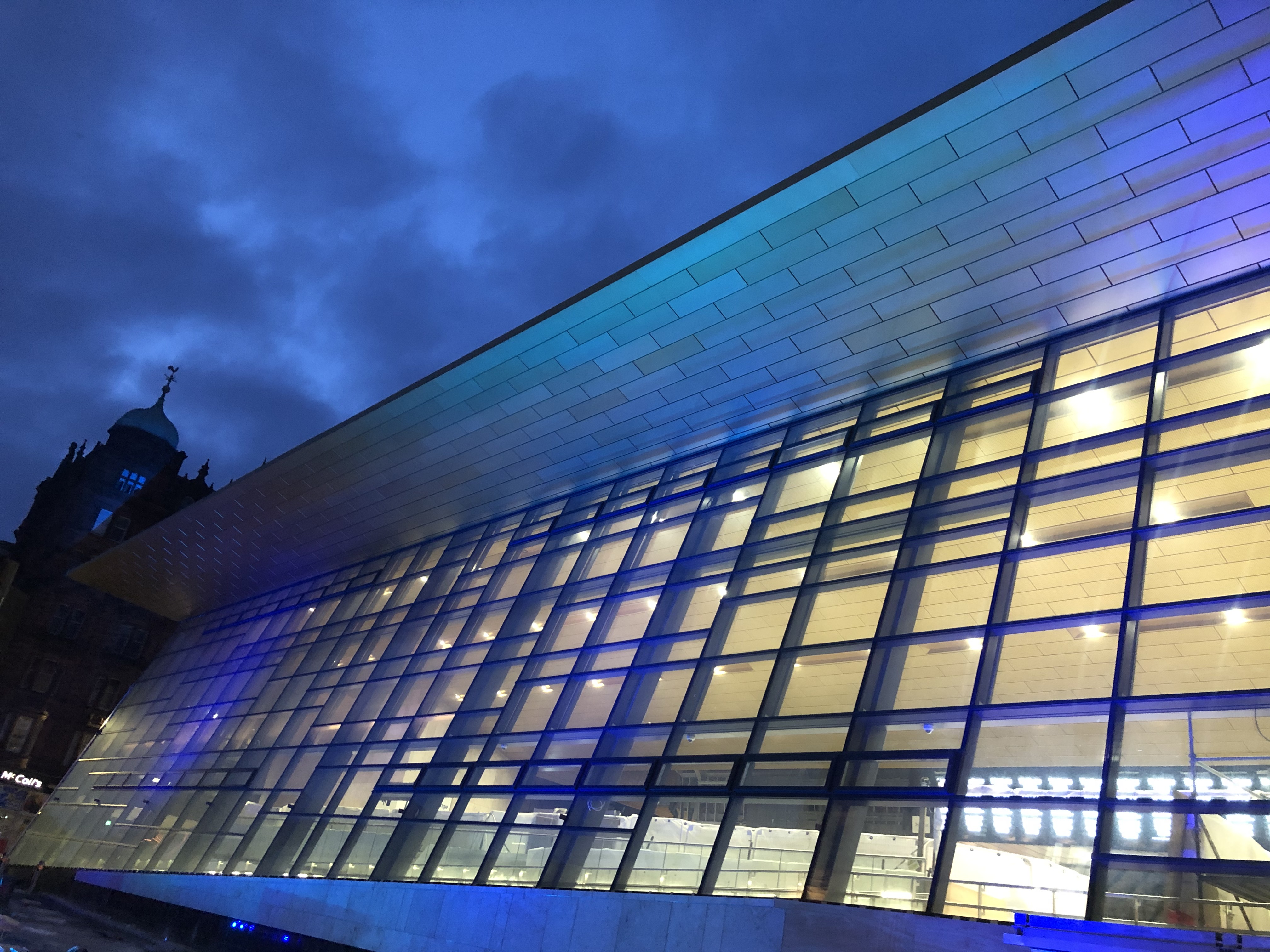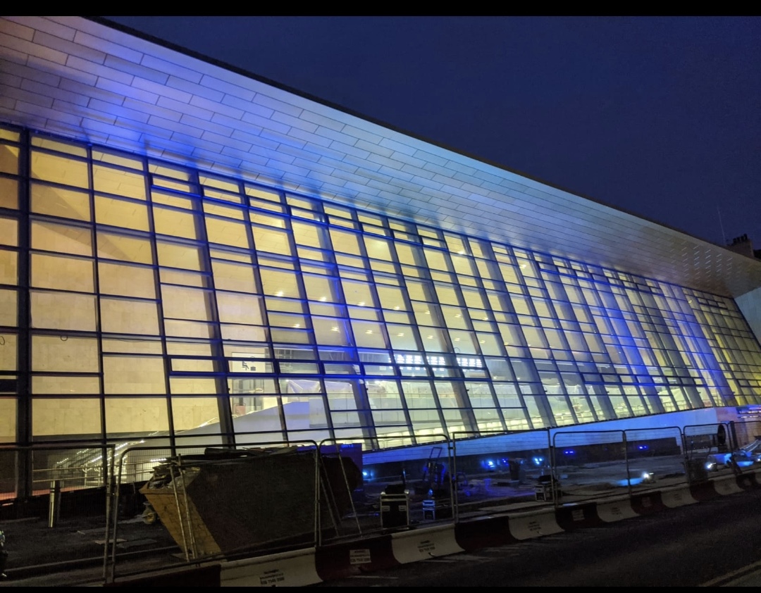 The new glass frontage of Glasgow Queen Street Station was lit-up blue to show solidarity with key workers and frontline NHS staff all across the country.