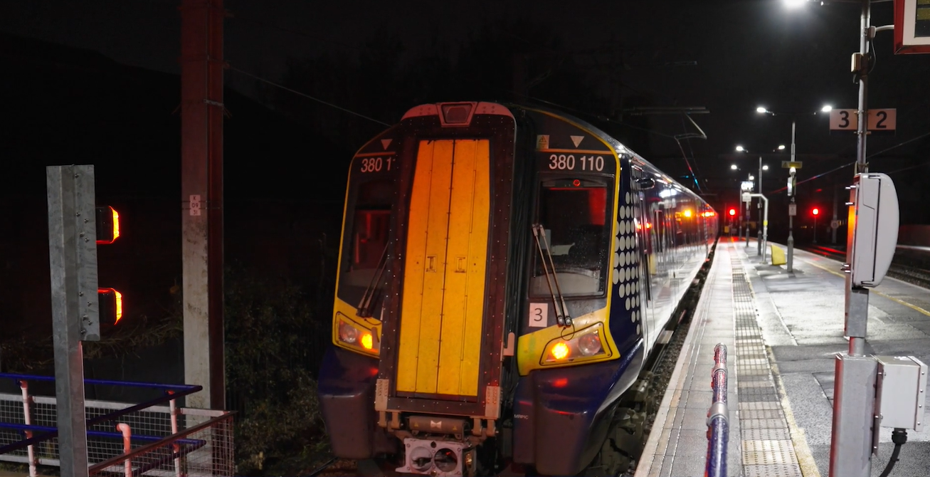 The train (a Class 380) successfully completed test runs from between 15mph up to 75mph along the newly electrified lines between Glasgow Central and Barrhead station overnight on Wednesday, November 7, into Thursday, November 8.