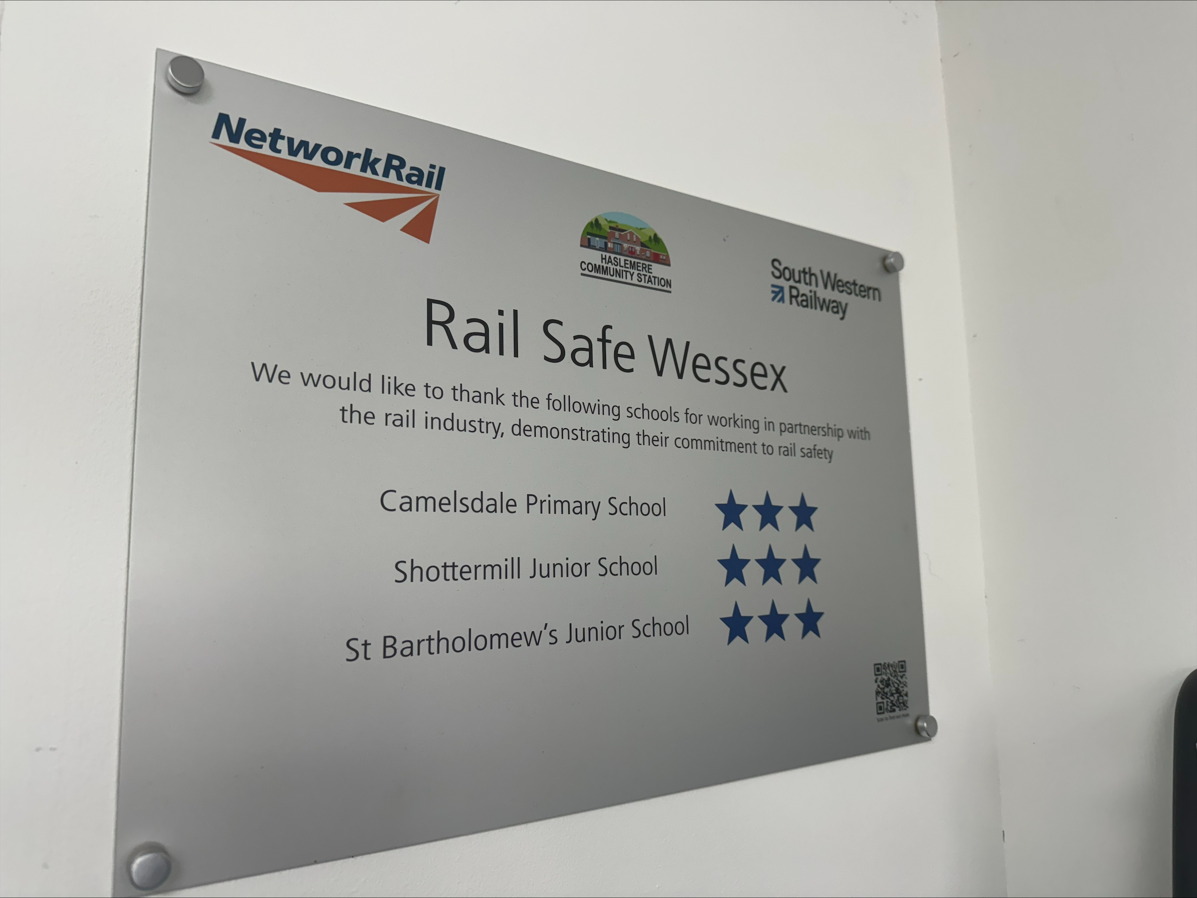 Rail Safe Wessex was publicly launched at Haslemere Station on Monday 23 September with the plaque commemorating the work of the schools being formally unveiled. A similar plaque is in place at Romsey Station.