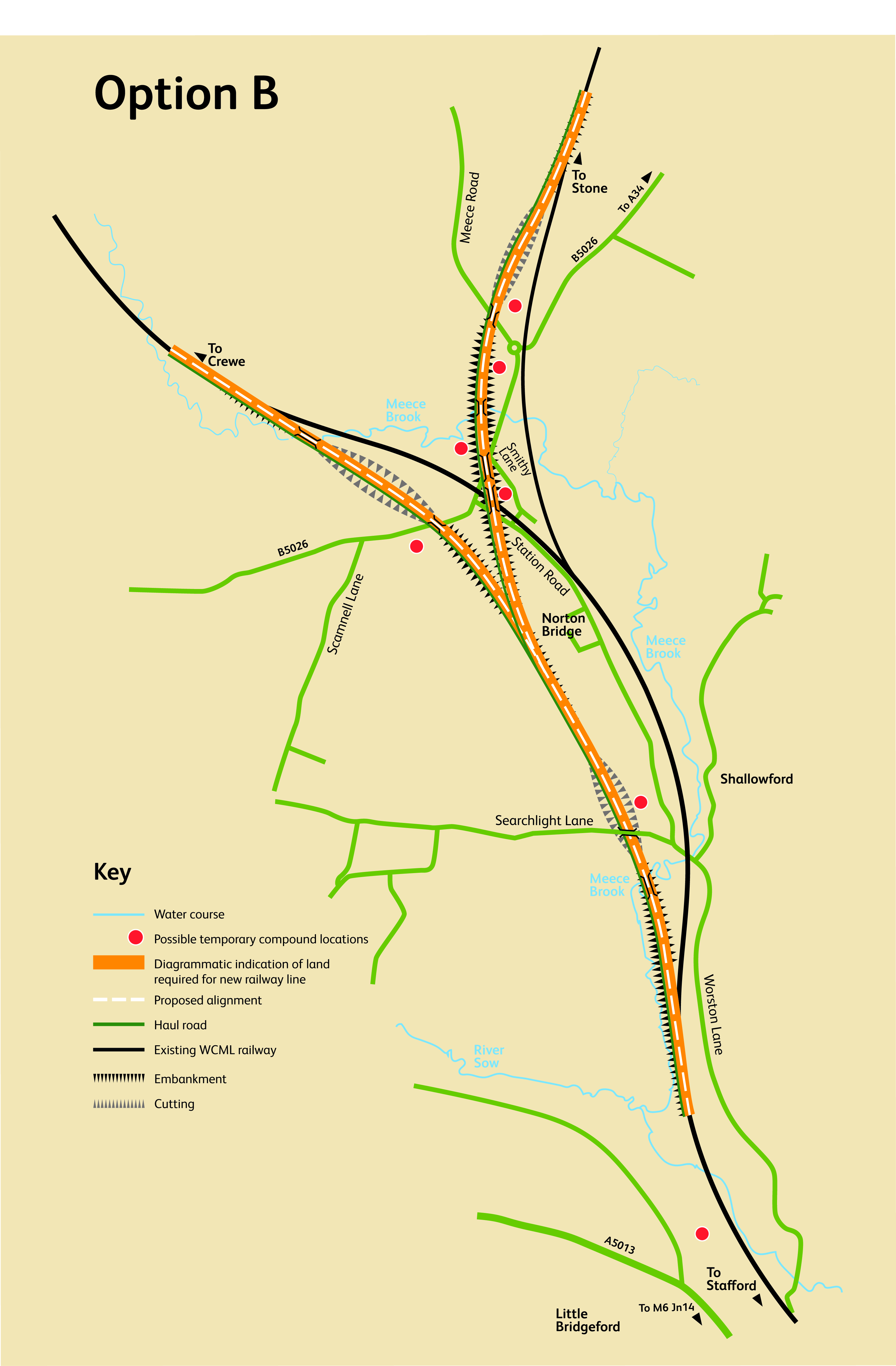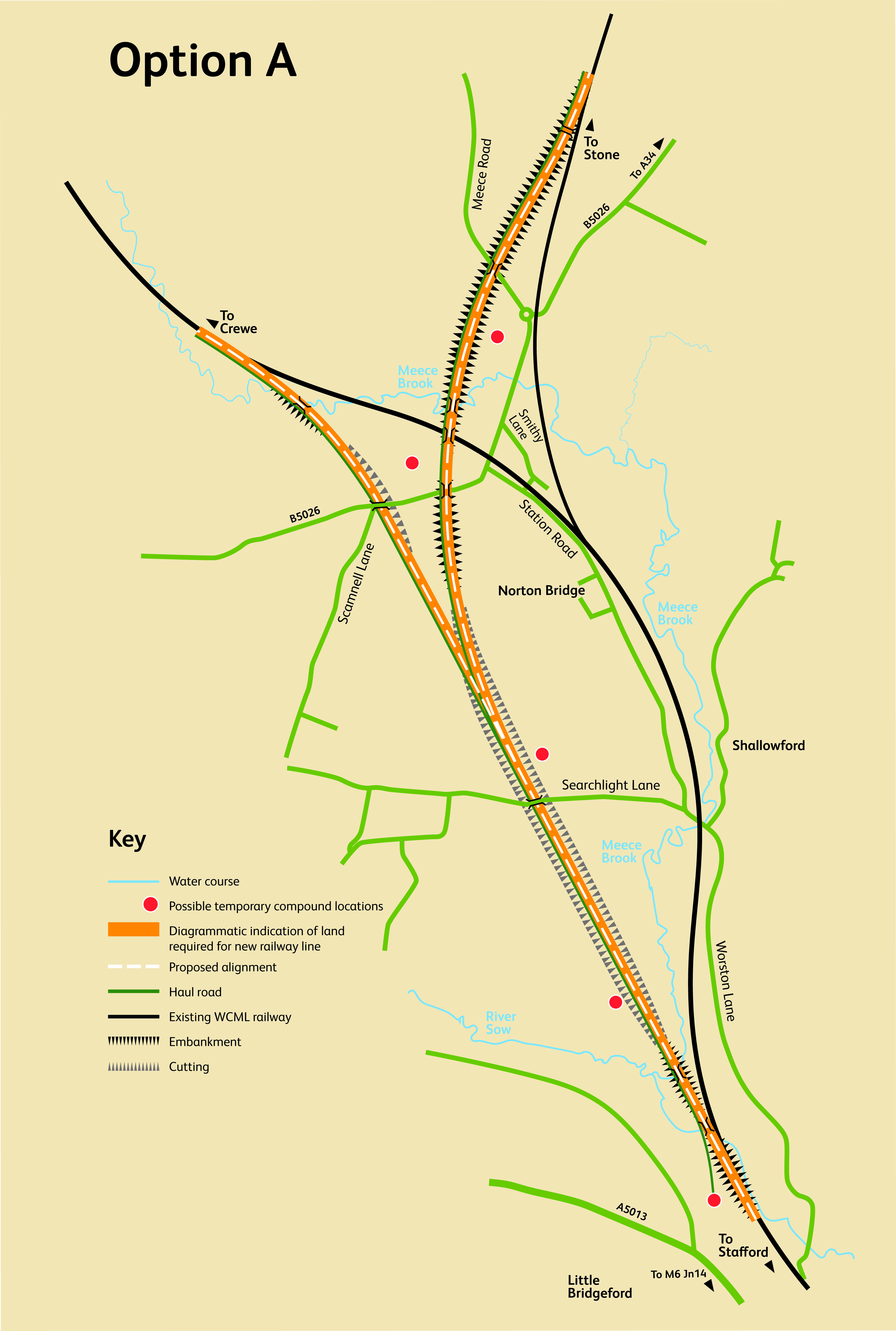 The layout of the railway in and around Stafford, particularly Norton Bridge, restricts capacity and performance along the main line. Options are being considered to upgrade Norton Bridge Junction to separate the path of cross country trains between Birmingham and Manchester from fast services between London and the North West.