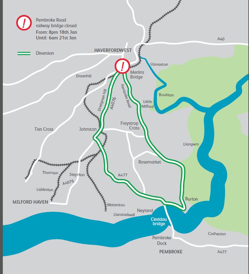 “We have been working closely with Pembrokeshire County Council and other partners to minimise disruption, and to develop the diversionary routes. I would encourage anyone wishing to find out more to attend one of the ‘drop-in’ events, where we will be happy to answer your questions.”