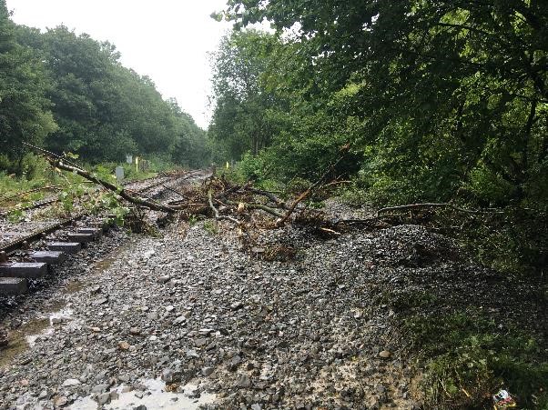 Heavy rainfall and stormy weather led to multiple landslips and washouts near Llandrindod Wells with an estimated 3,000 tonnes of cuttings, embankments and track being damaged while ballast – the stones that support the track – was washed away by flooding.