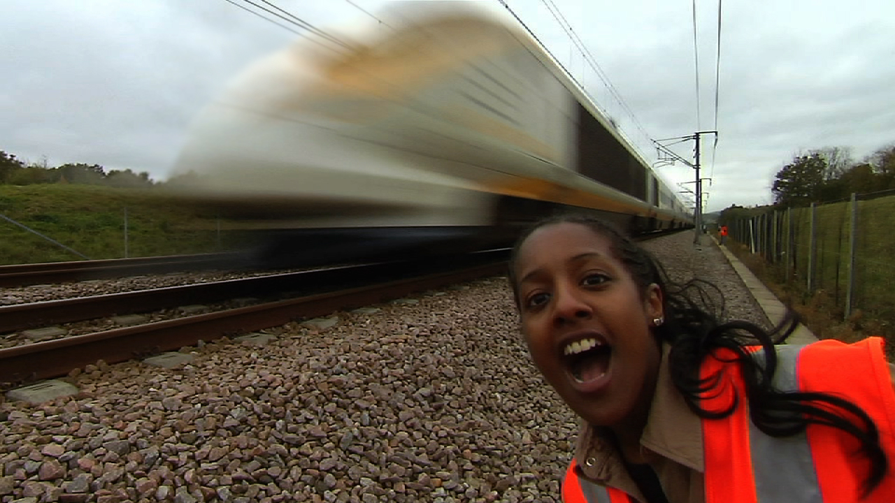 The DVD, which forms part of Network Rail’s ‘No Messin’ campaign, communicates important facts and figures about the speed of high-speed trains, the turbulence they create, how quiet they are, their stopping distance and a graphic demonstration using watermelons to show what would happen if someone got struck by a train. It also shows how electricity can jump through the air and shows the consequences of throwing stones at trains.