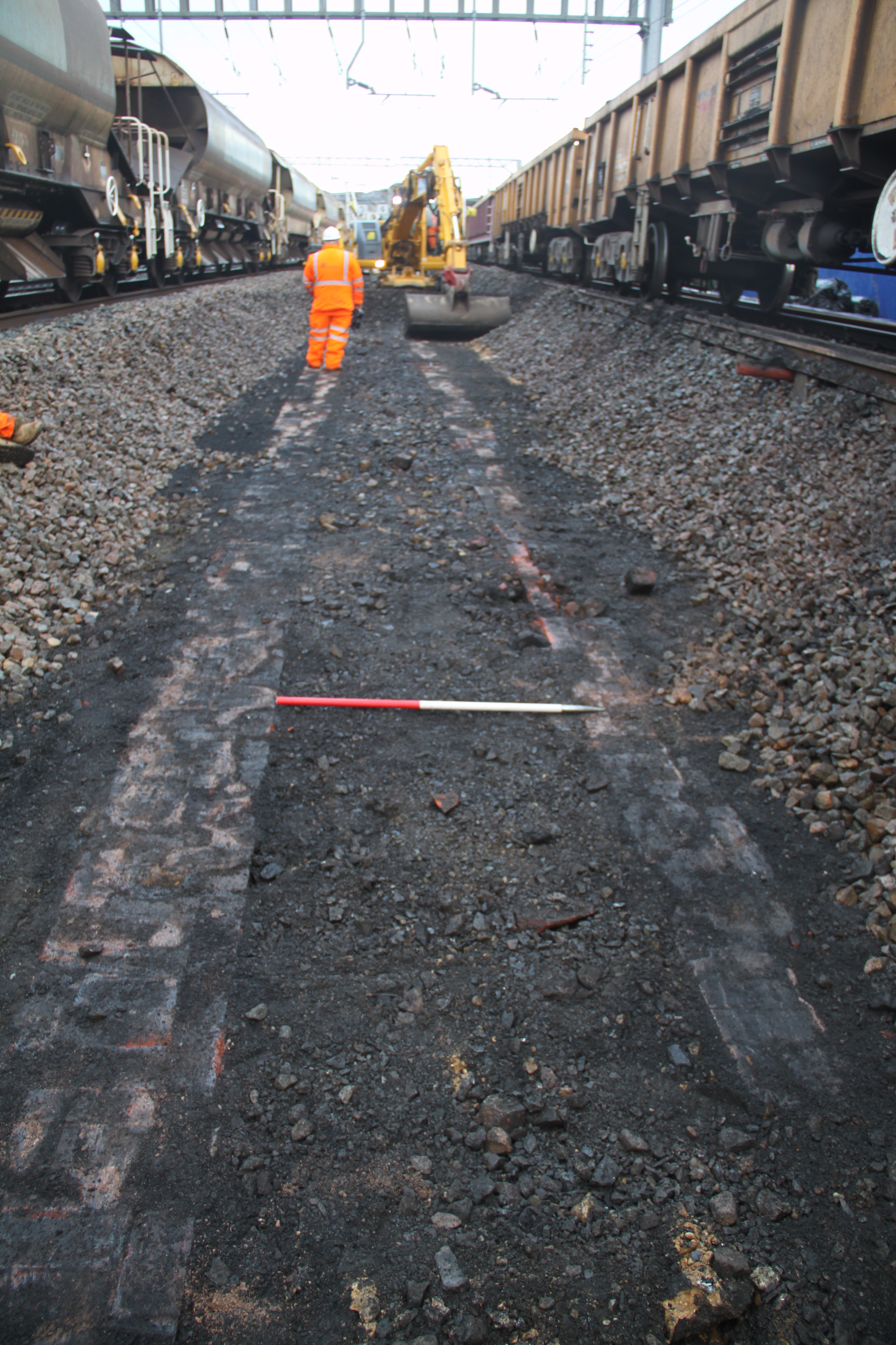 With time limited by the need to complete the trackwork so the railway could re-open on time, the remains were photographed and surveyed for future reference and are now preserved carefully beneath the new railway lines.