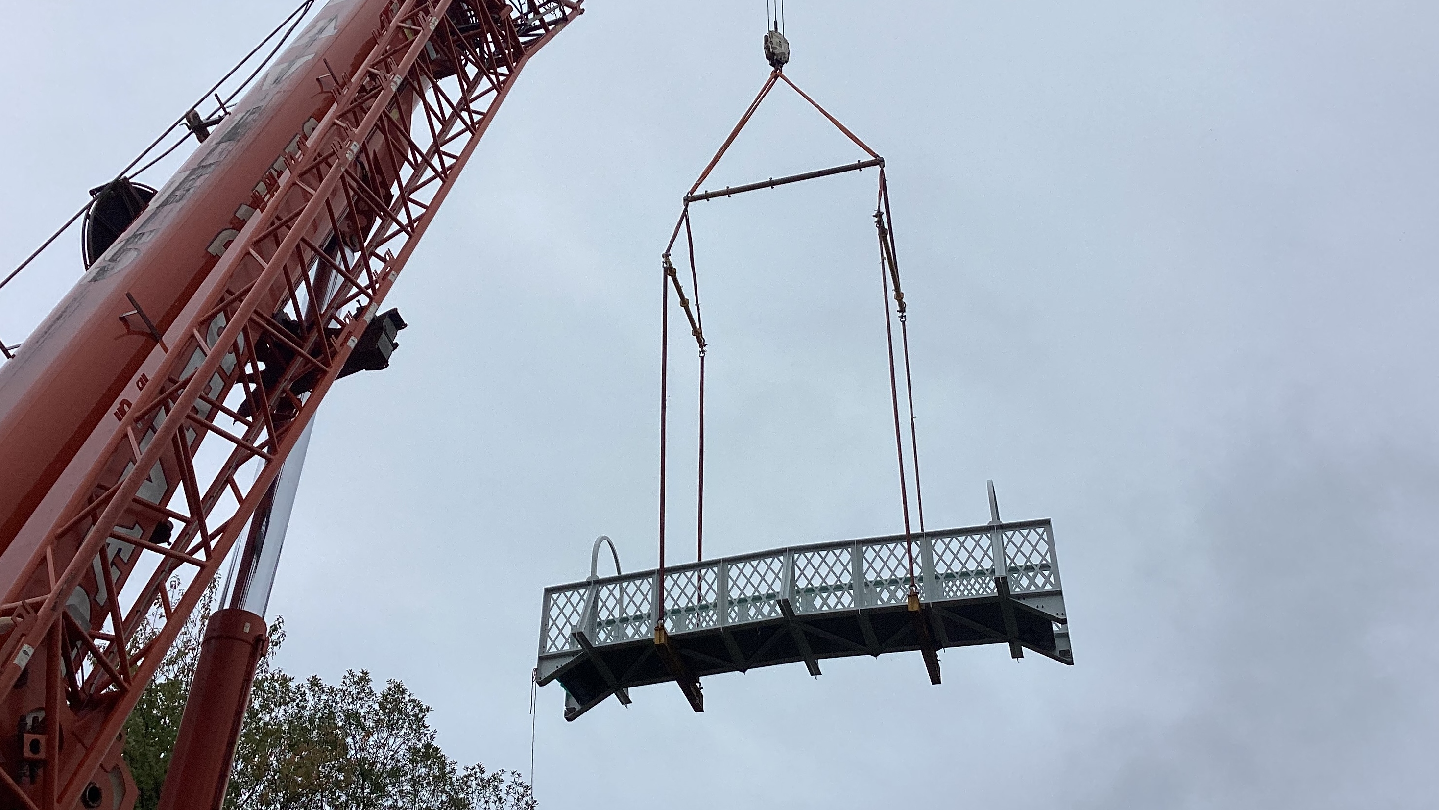 The deck was lifted out by crane and replaced with a new span made from Glass Reinforced Plastic (GRP) resin, a polymer made from recycled waste plastic which will last for the next 60 years.