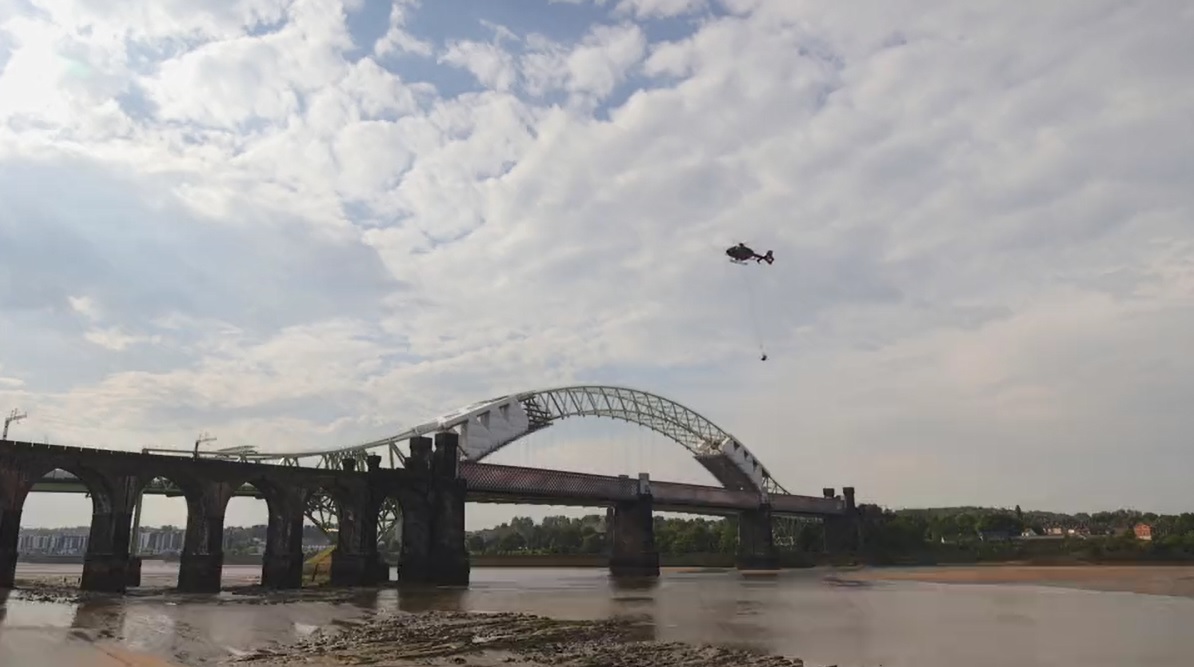 A historic bell located at the top of Runcorn’s iconic Britannia railway bridge has been removed by helicopter ahead of a full restoration by Network Rail.
