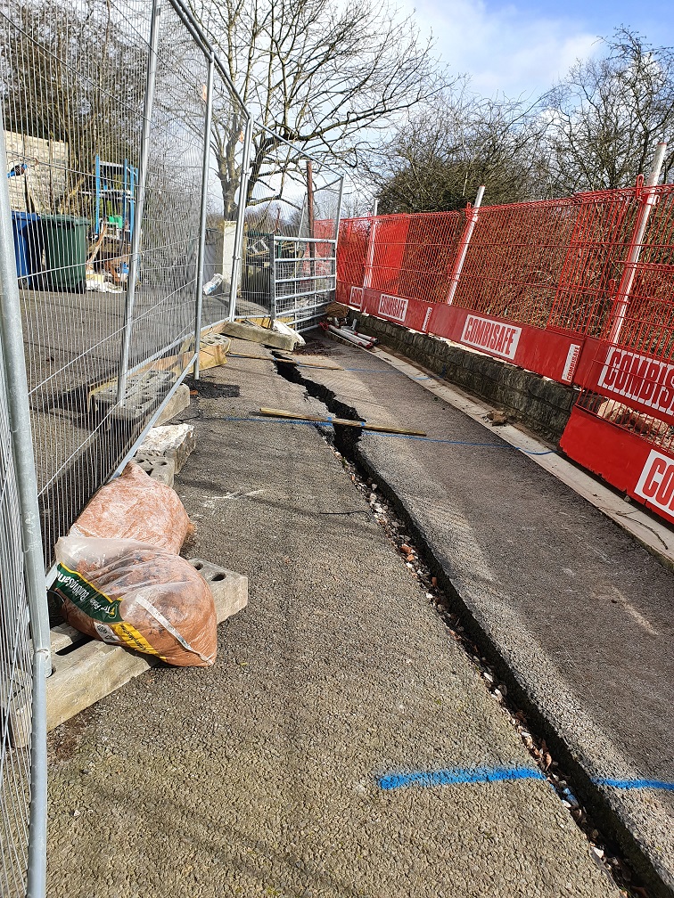 After persistent heavy rain, a 15m fault line suddenly appeared on top of a railway cutting at Pimbo Lane in Upholland, on the Kirkby to Wallgate line.
