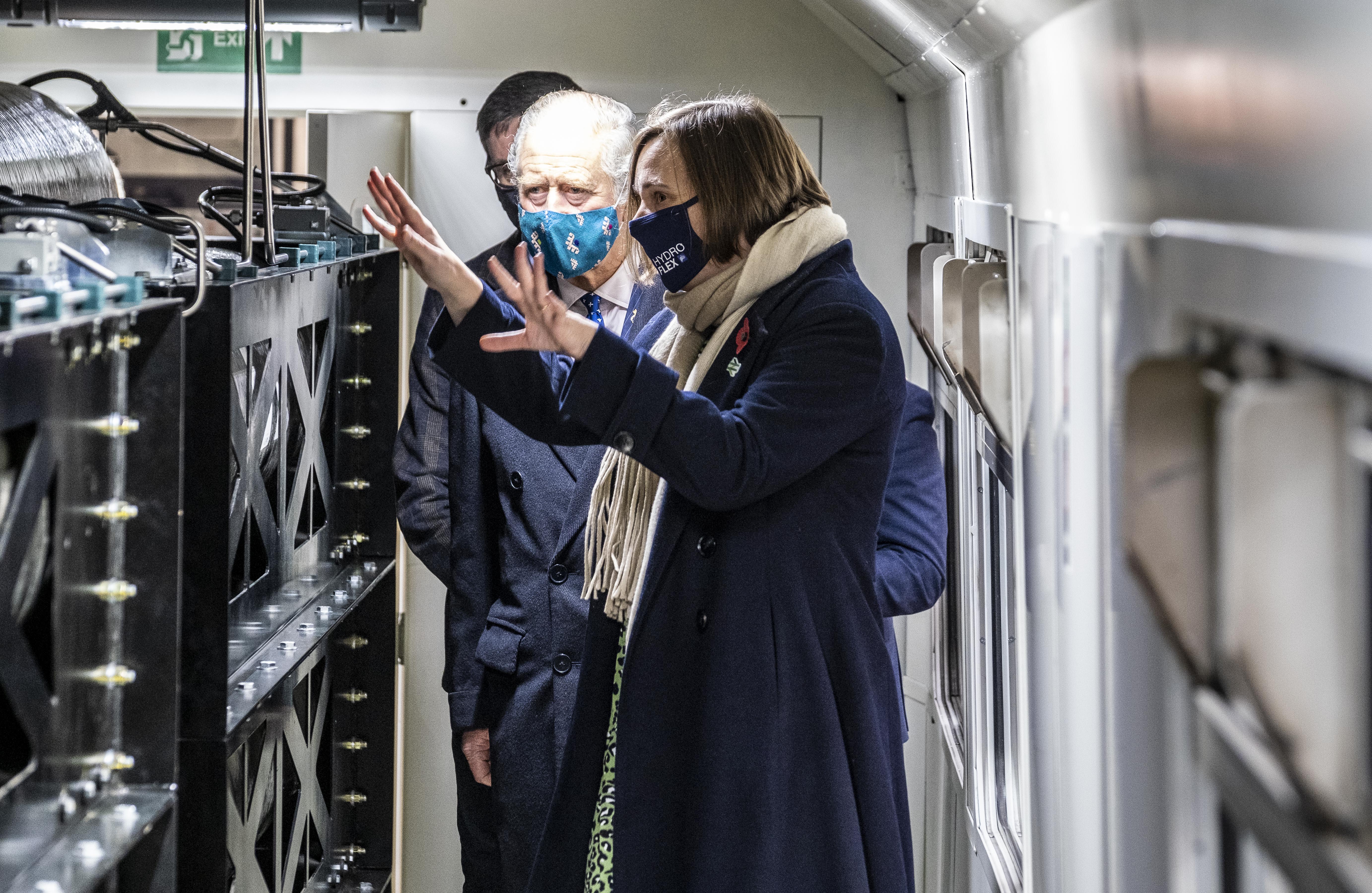 Managing director of Porterbrook, Mary Grant, welcomed His Royal Highness on board the Derby-based company’s HydroFLEX train for a unique preview inside the HydroChamber, to see how the latest fuel-cell technology can combine hydrogen with oxygen to power the train. The technology behind the train has been developed through a partnership with the University of Birmingham and was built in just 10 months using upcycled rolling stock from a 30-year old train.