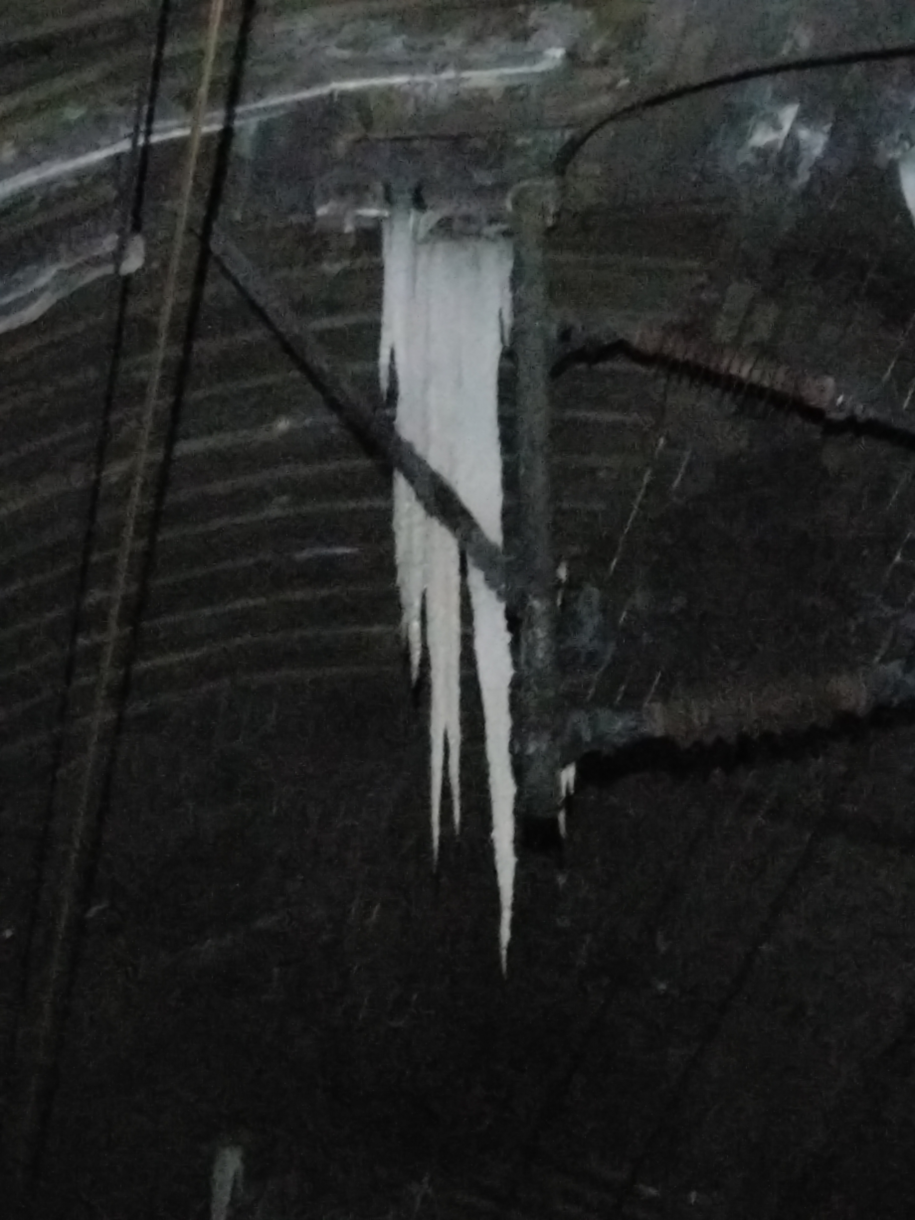 Giant icicles edging close to high-voltage overhead power lines led today to train customers being diverted.