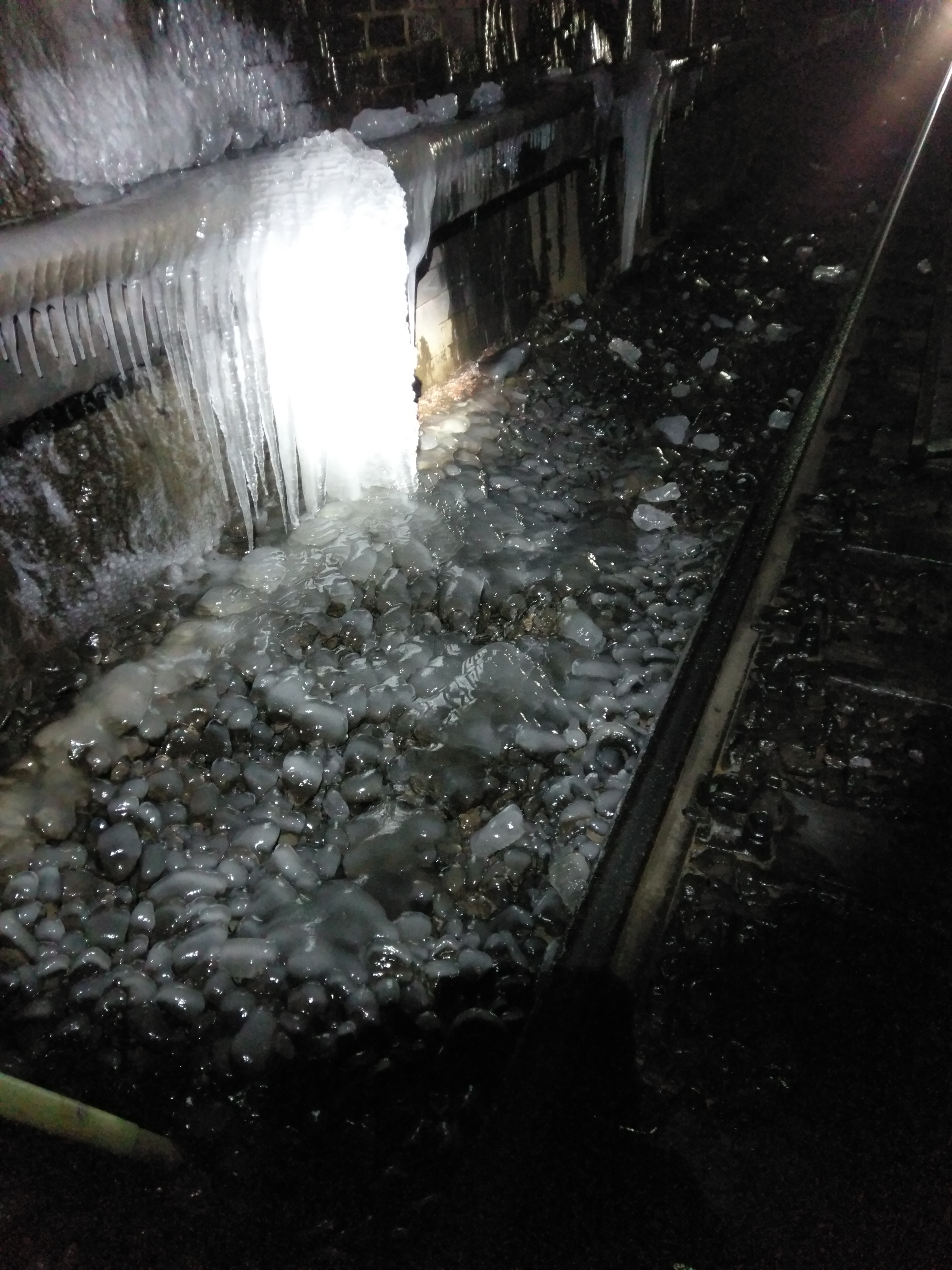 Some train services on the West Coast main line were steered around Kilsby tunnel in Northamptonshire for an hour to enable Network Rail engineers to set about the task of removing the icicles from the tunnel roof.