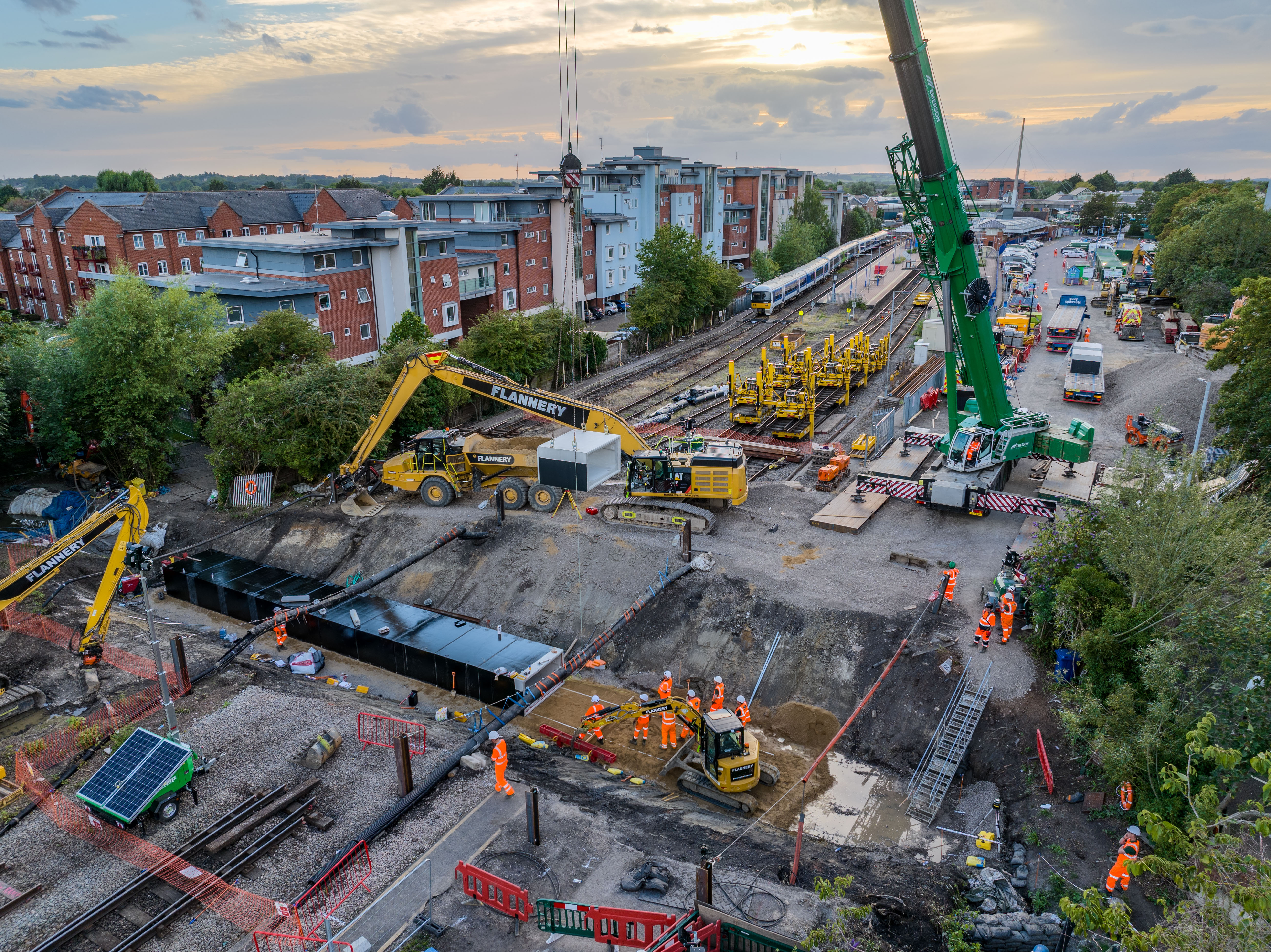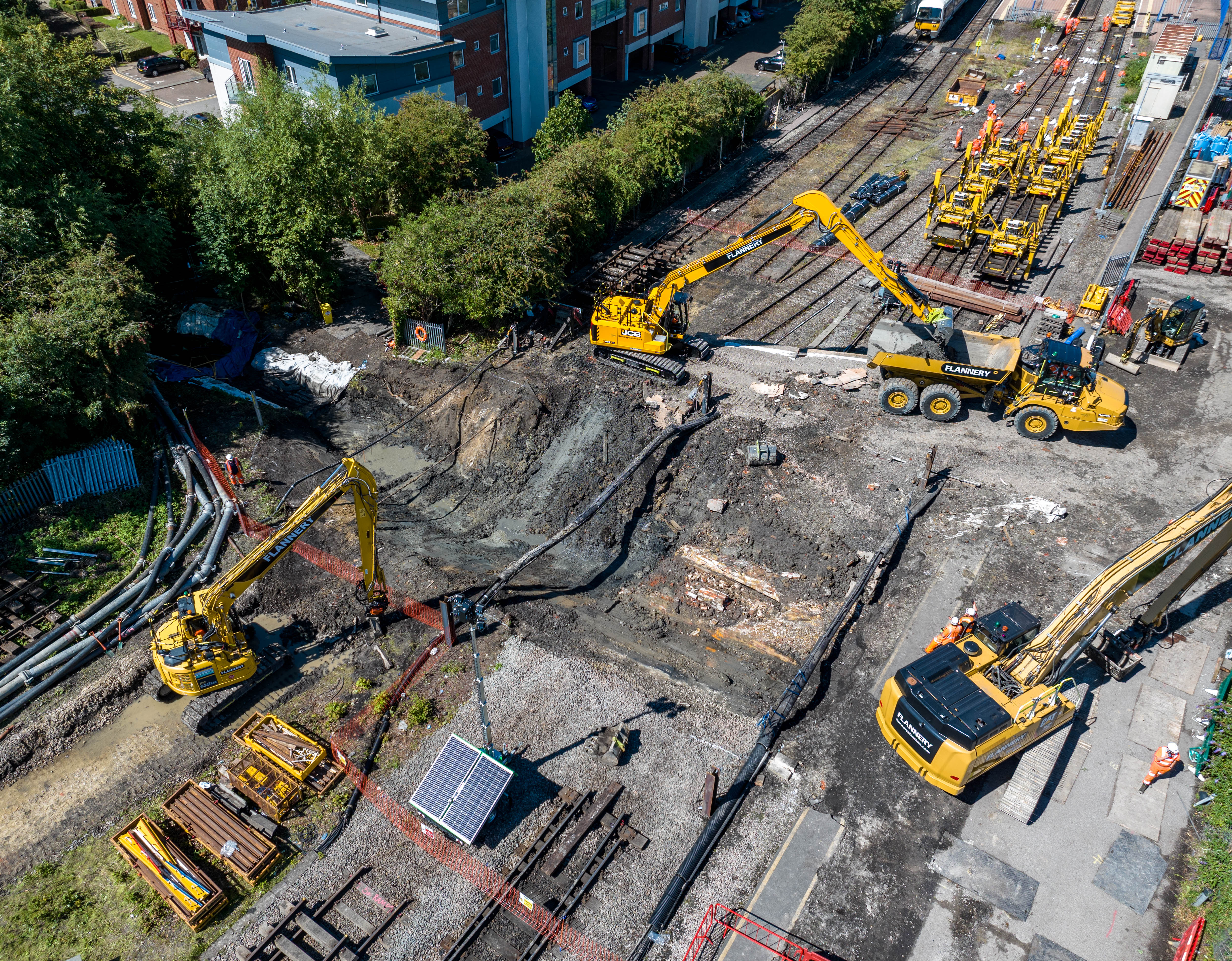 Impressive aerial footage and photos released today (Monday 21 August) shows how engineers completely dug up the railway by Aylesbury station to replace the drainage system which connects to the nearby canal basin.