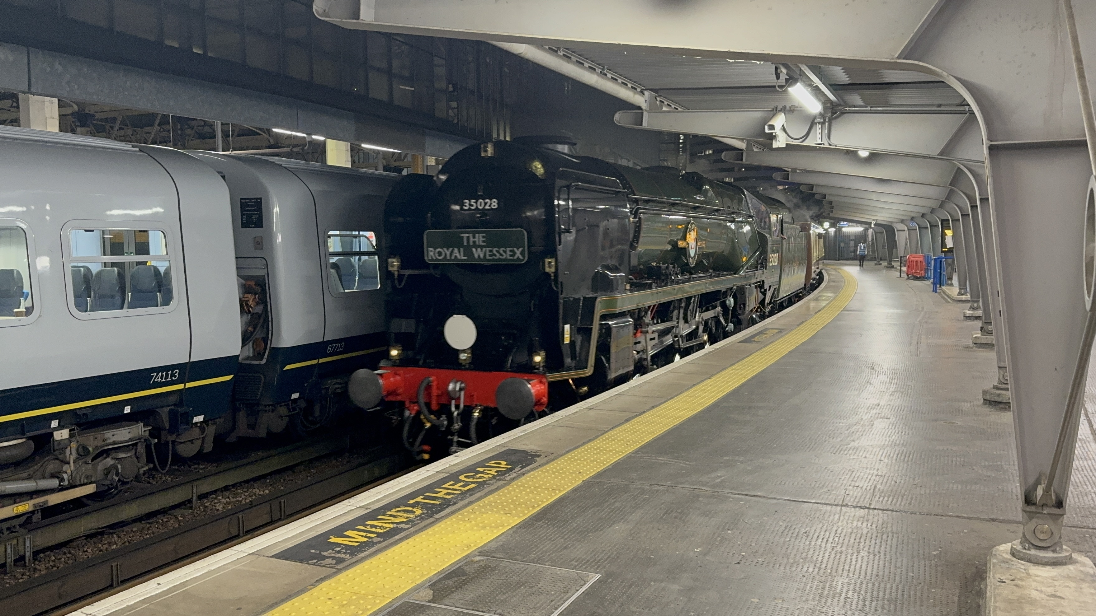 Waterloo, Britain’s biggest station, welcomed the train when it pulled into Platform 19 late last night (Thursday 17 July). Steam was in the air at London Waterloo as it was preceded by the Merchant Navy Class Clan Line No. 35028, which will form the head of the train.