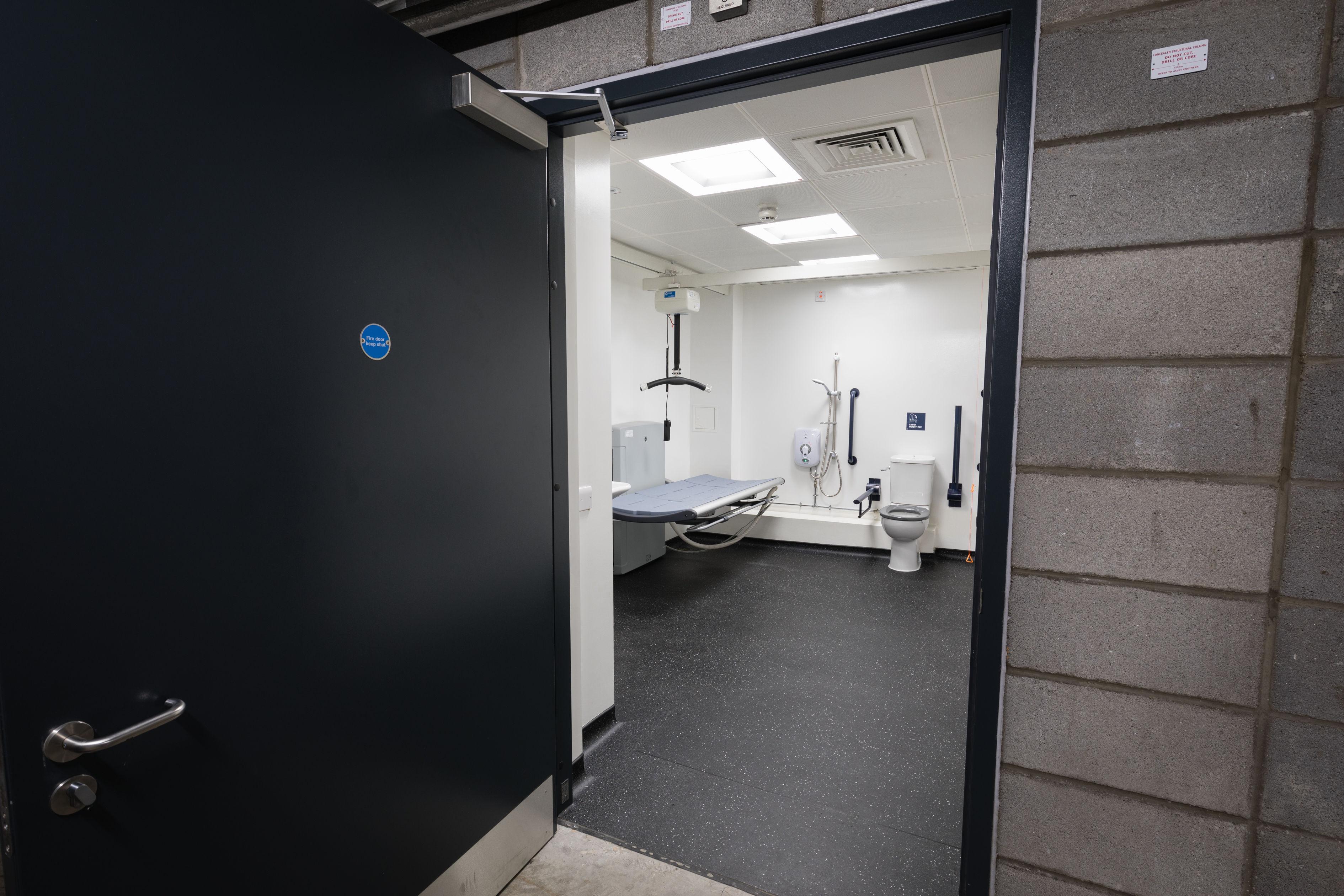 They include features such as a height adjustable adult-sized changing bench, a hoist system plus a curtain for privacy from family members or carers, and specially designed toilets and sinks.