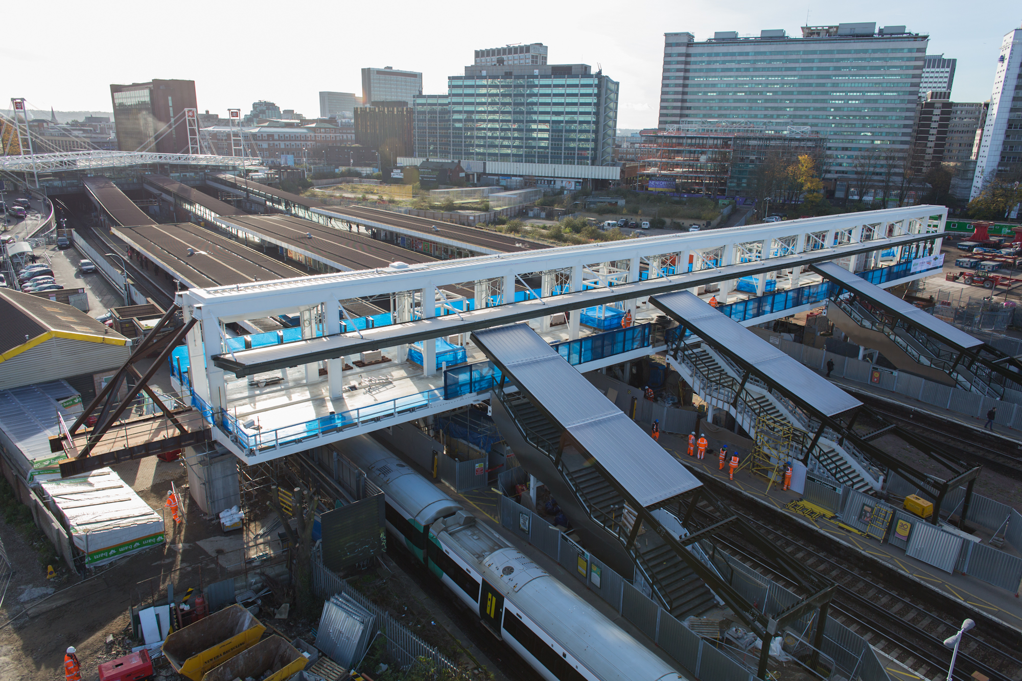MR Scaffolding Ltd, based in south London, carried out the specialist access scaffolding, including temporary staircases and temporary weather protection for the construction of the new footbridge at East Croydon station. This allowed safe access to works areas in a variety of conditions. www.mrscaffolding.com