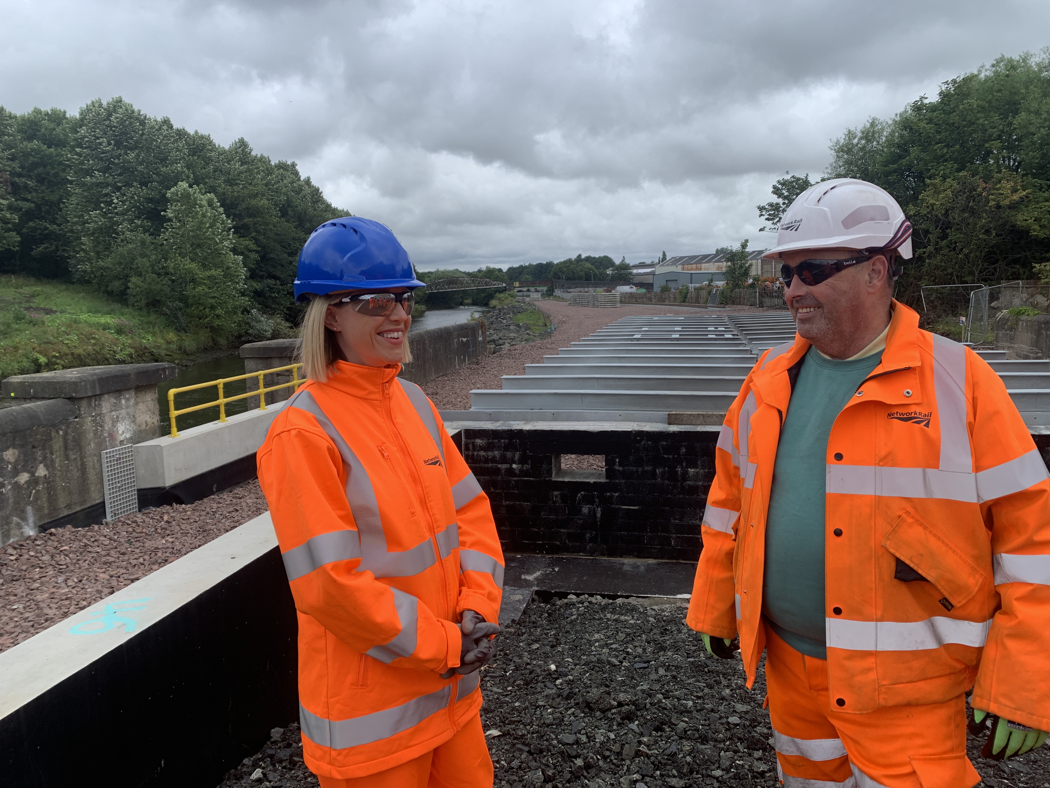 “It is great to come to site and meet the project team who are delivering the work to restore the rail link and reconstruct the Bawbee bridge and the progress that is being made is fantastic to see.