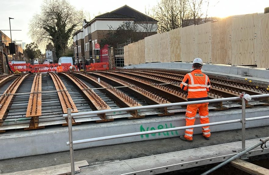 Underneath the structure, railway lines take London Overground trains between Canonbury and Dalston Kingsland / Dalston Junction stations. Trains were able to keep running for most of the rebuild project, with occasional closures of the line needed to allow major milestones to be achieved.