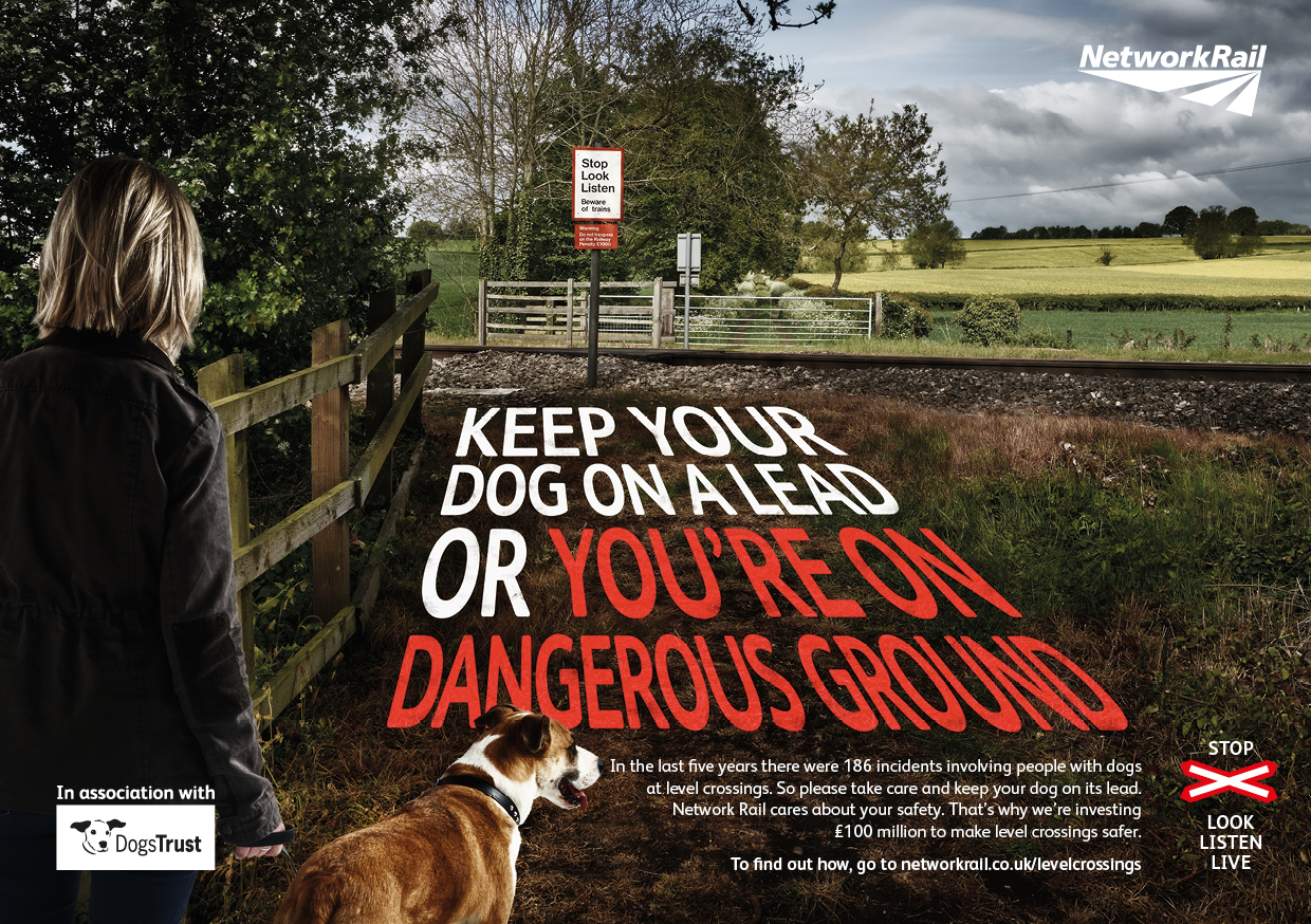 Network Rail has teamed up with Dogs Trust, the UK's largest dog welfare charity, which is supporting the campaign and will be including level crossing safety materials in its rehoming packs for new dog owners handed out at its 20 rehoming centres across the country.