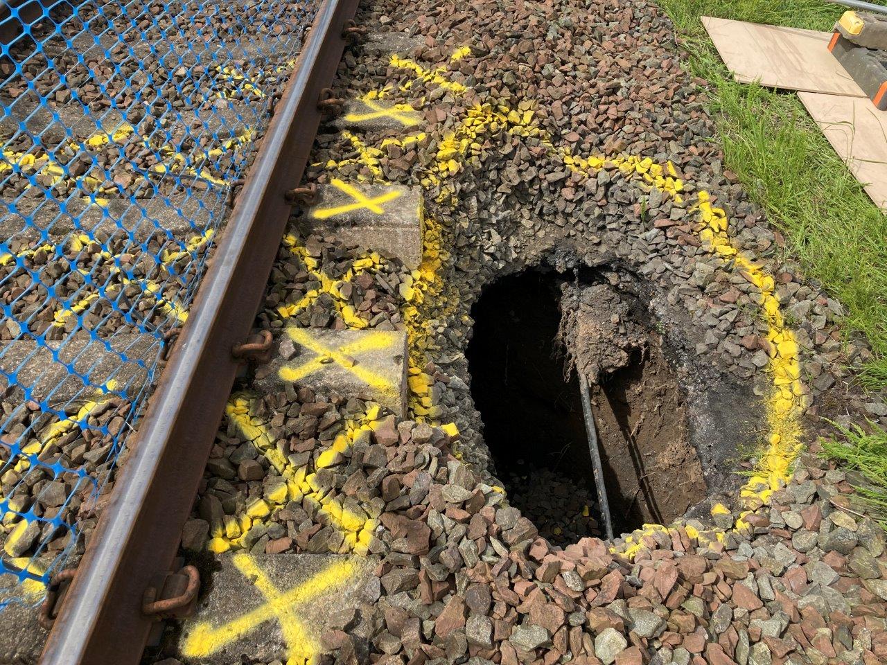 The unusual void was identified on Saturday June 4 and Network Rail is working with experts from the Coal Authority to investigate potential mineworkings in the area.