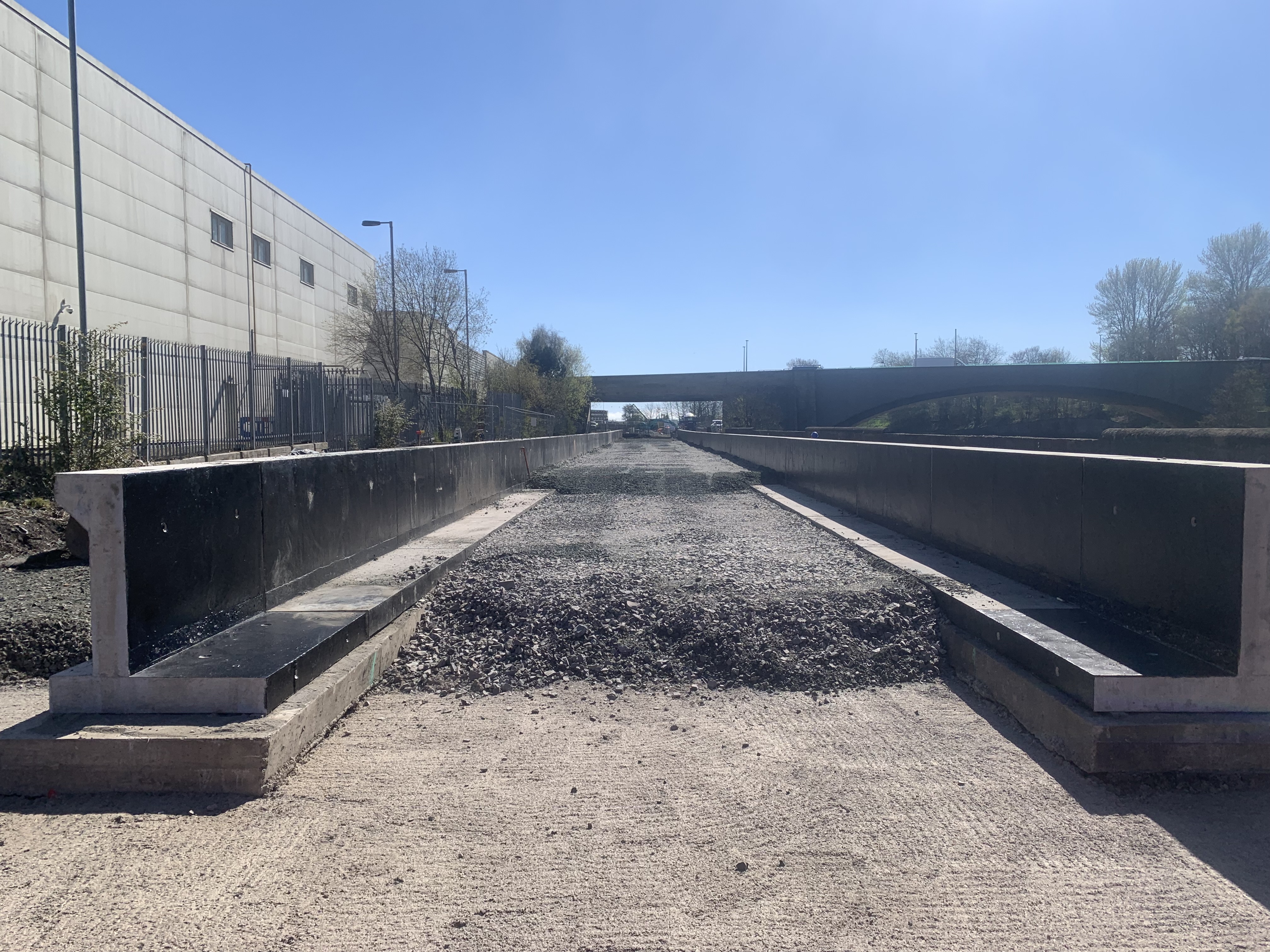 The track-side walls of the new platforms have also been installed using 74 precast concrete sections, each weighing more than 4 tonnes. When the section of the Bawbee Bridge which sits above the station has been replaced, more side-wall units will be installed to complete the platforms.