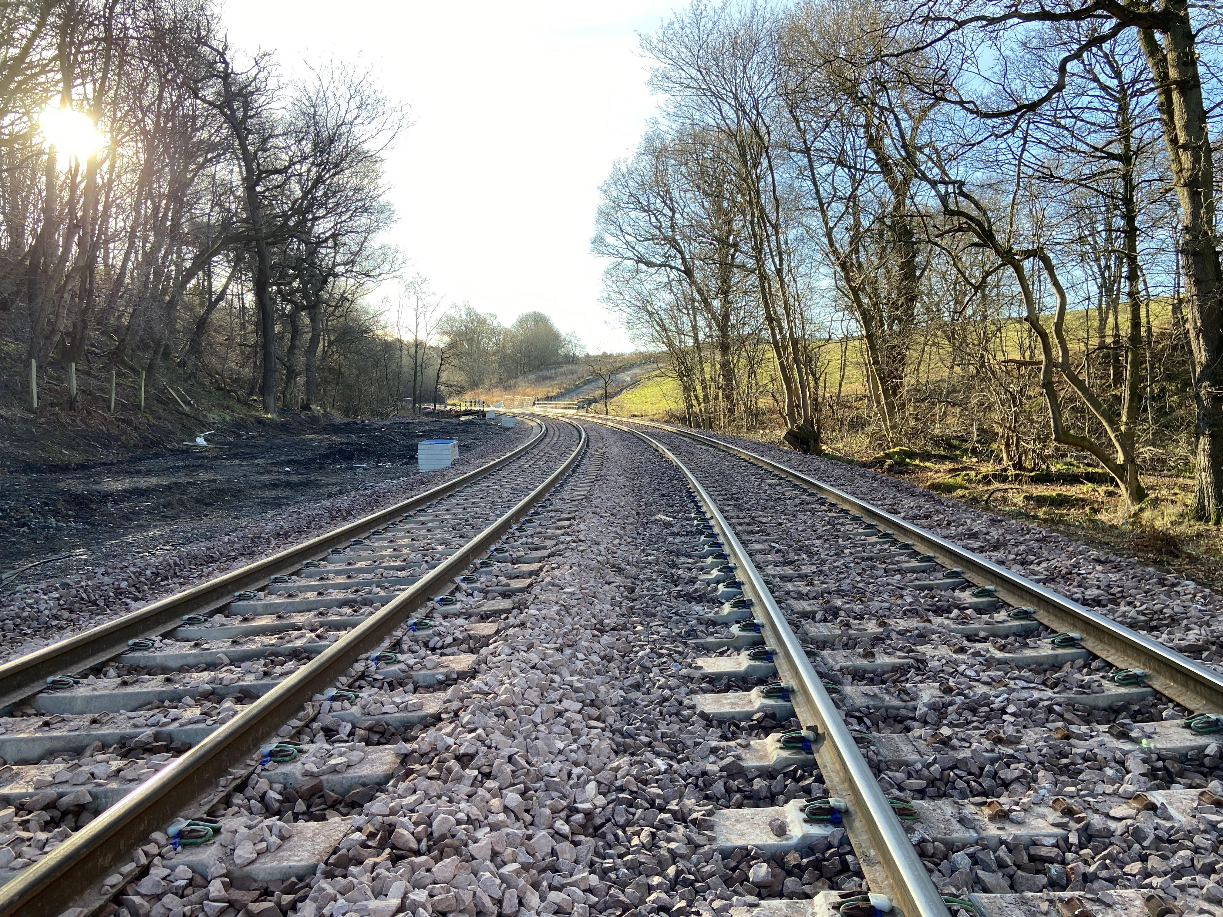 Since the start of work on the line, the track bed has been dug out with 30,000 tonnes of spoil removed. The ground has been waterproofed and approximately 37,000 tonnes of new stone ballast laid.