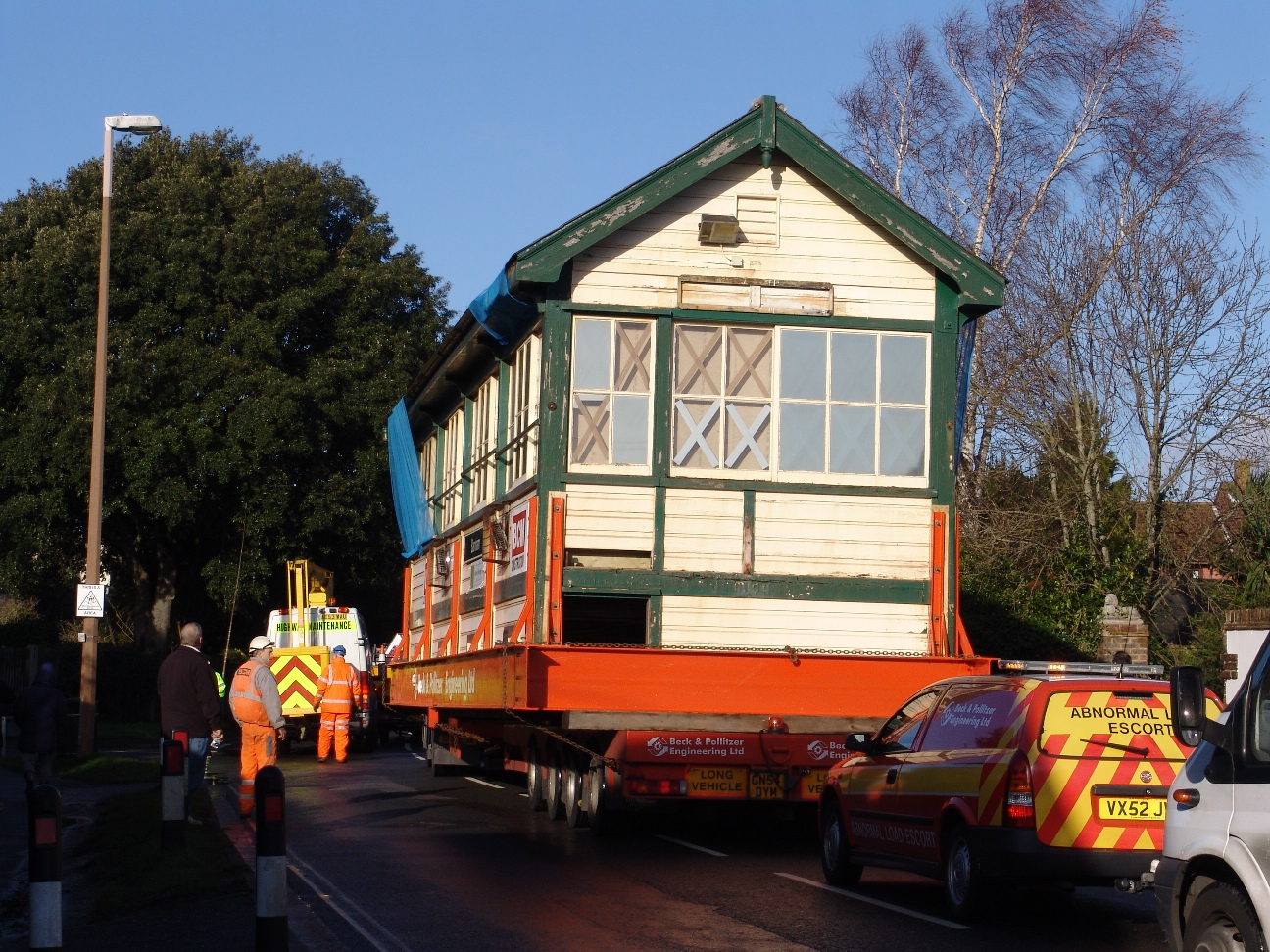 The delicate operation, which took place despite wet and windy conditions on Sunday morning, was the culmination of years of hard work and fundraising and months of planning. It involved lifting the five-tonne structure by crane from the middle platform of Barnham station and putting it onto a large low-loader. The signal box then made the three-hour journey across the town before being lifted onto the new pre-built foundations at its new home. Along the way approximately 100 telephone lines had to be moved out of the way one at a time.