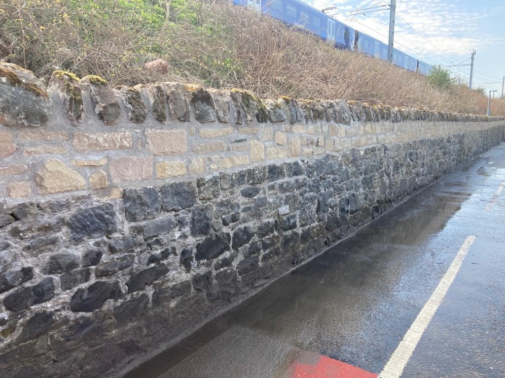 Engineers used stone to match the existing wall and to make sure the taller structure better protects the safety of passengers and lineside neighbours while keeping with the local surroundings.