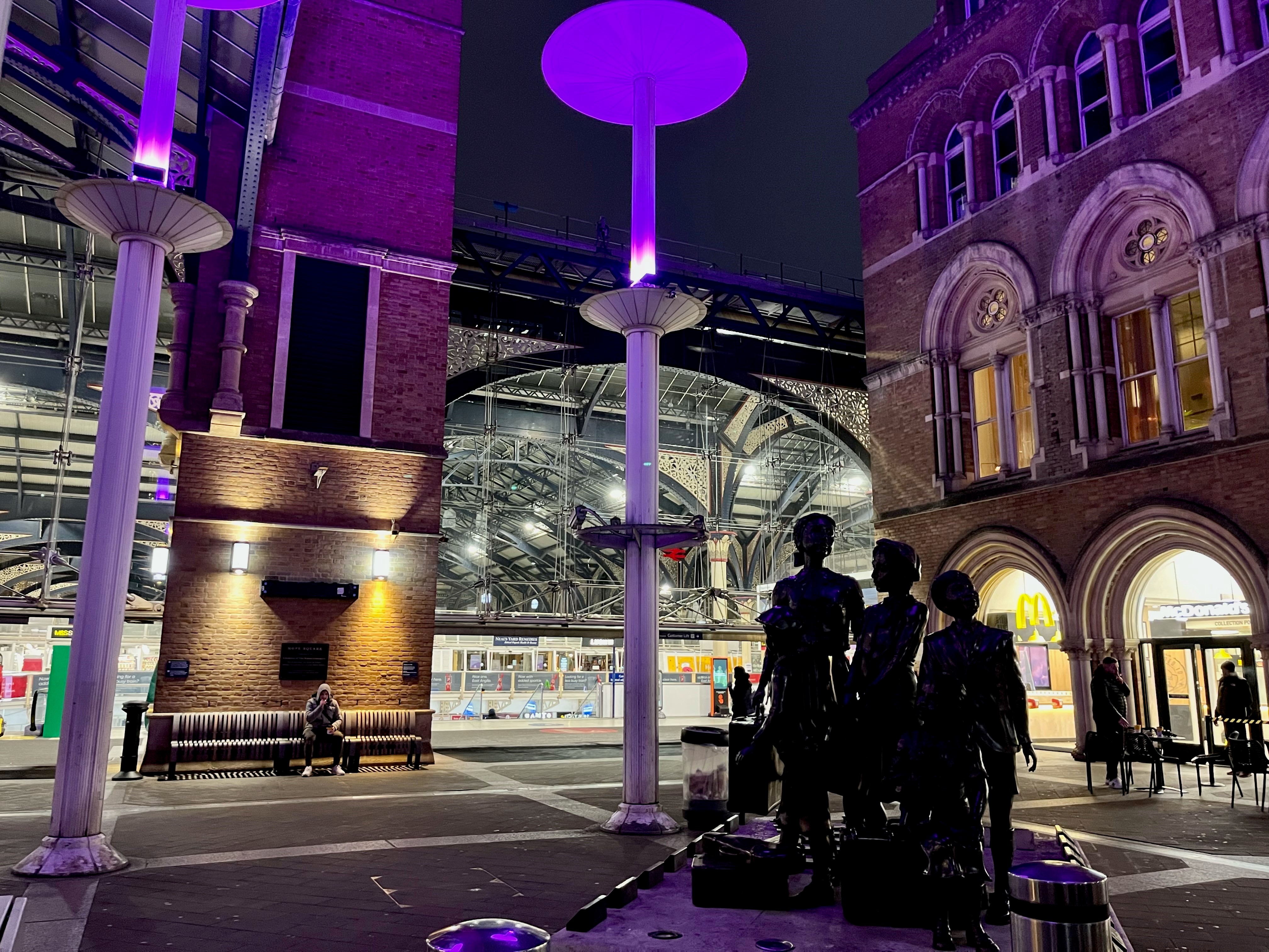 Today, Thursday 27 January, the lights outside London Liverpool Street station have been turned purple for Holocaust Memorial Day.