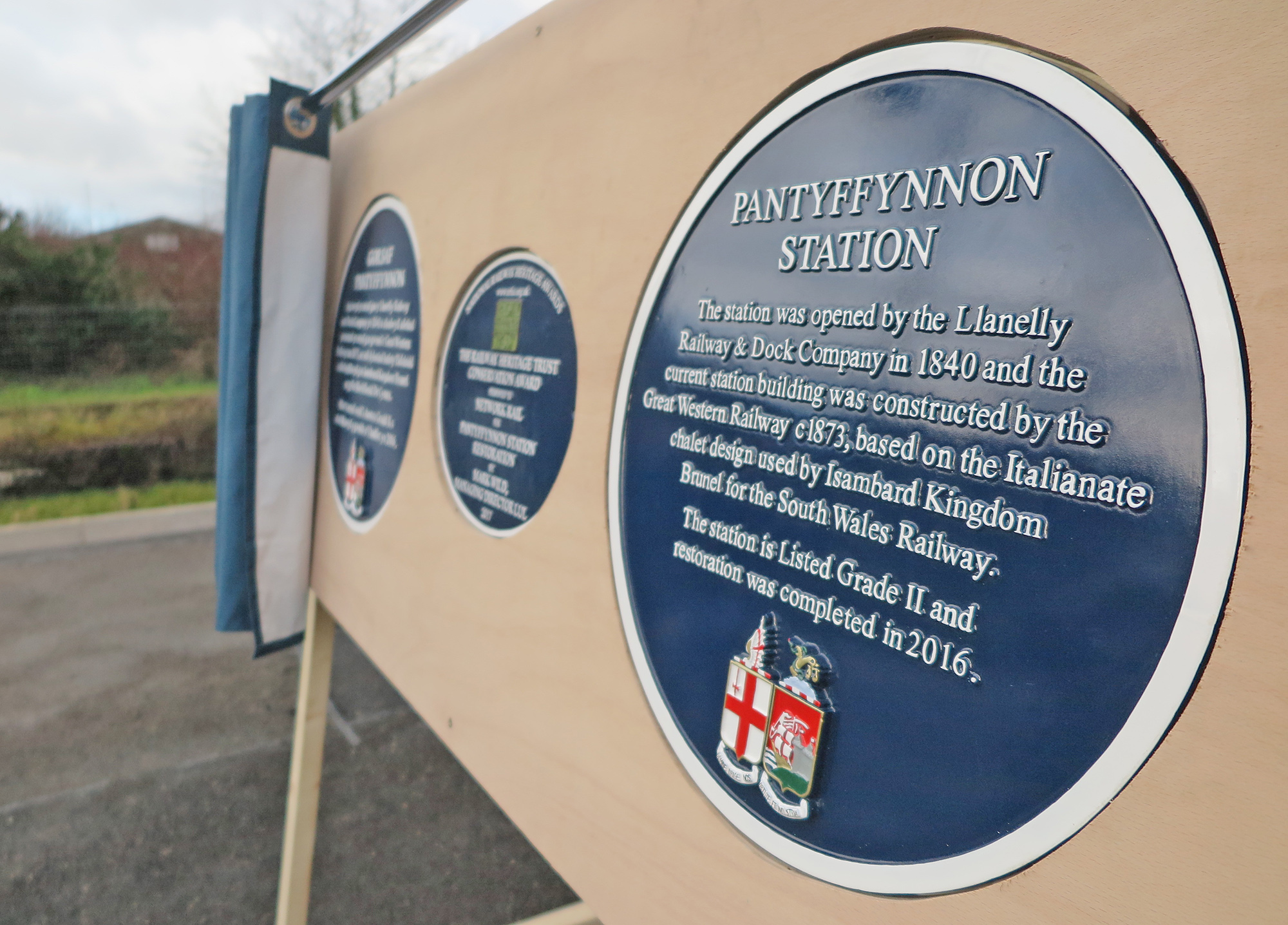 The station, near Ammanford, Carmarthenshire sits on the Heart of Wales Line, which is celebrating its 150 year anniversary this year. Adam Price AM and Jonathan Edwards MP, for Carmarthen East and Dinefwr, joined representatives from Network Rail, Arriva Trains Wales, Carmarthenshire Council, the Railway Heritage Trust and the National Rail Heritage Awards to unveil the plaque and take a tour of the Grade II listed building.
