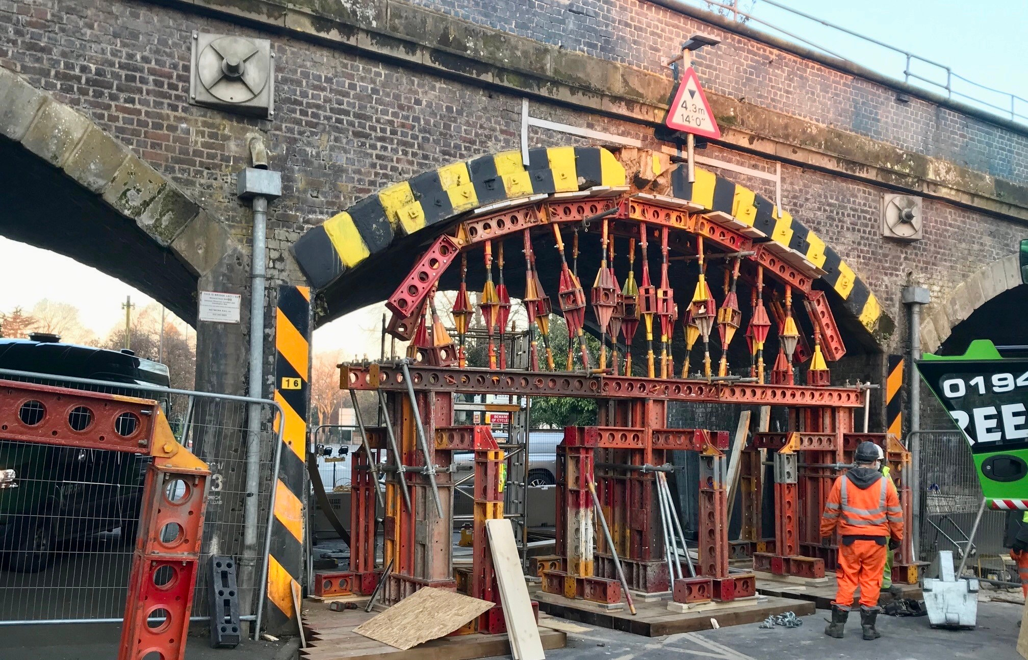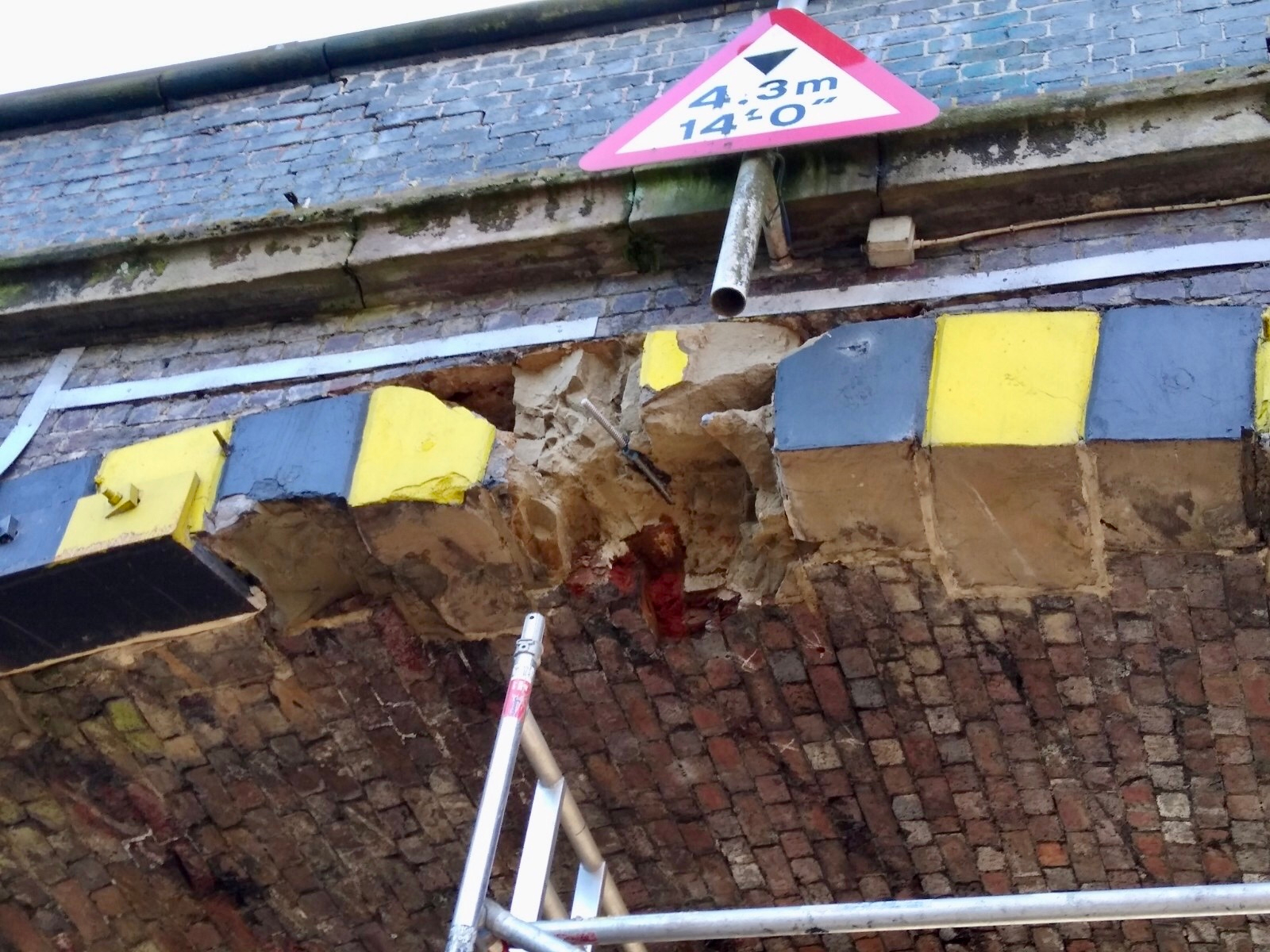 The vehicle smash caused significant damage to the bridge’s central arch, forcing the temporary closure of the railway above and a much longer closure of the road below.