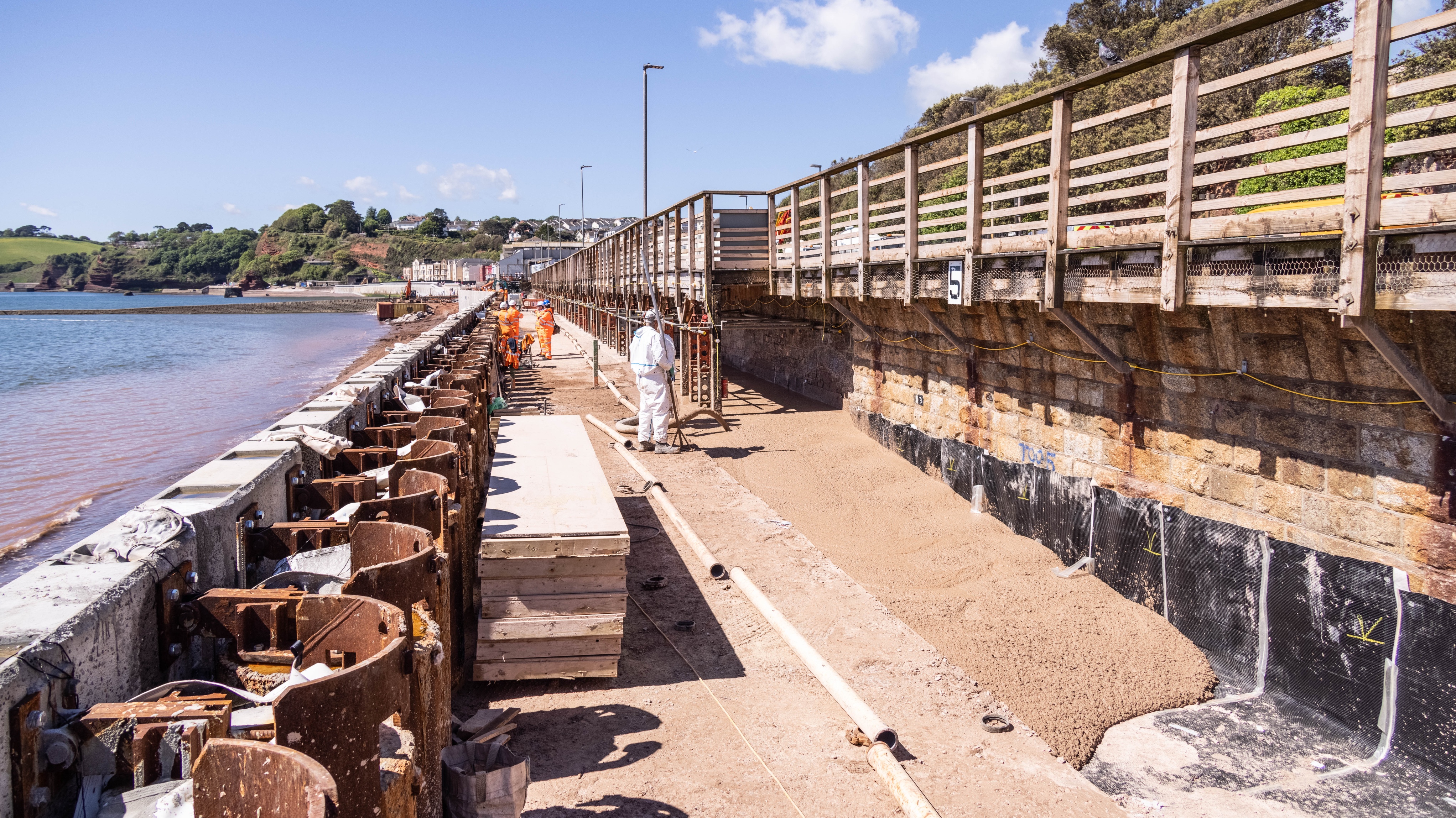 Network Rail’s coastal protection scheme on the south Devon coastline is benefitting from the latest in construction technology, with low carbon concrete being used to reinforce the new, bigger sea wall structure at Dawlish.