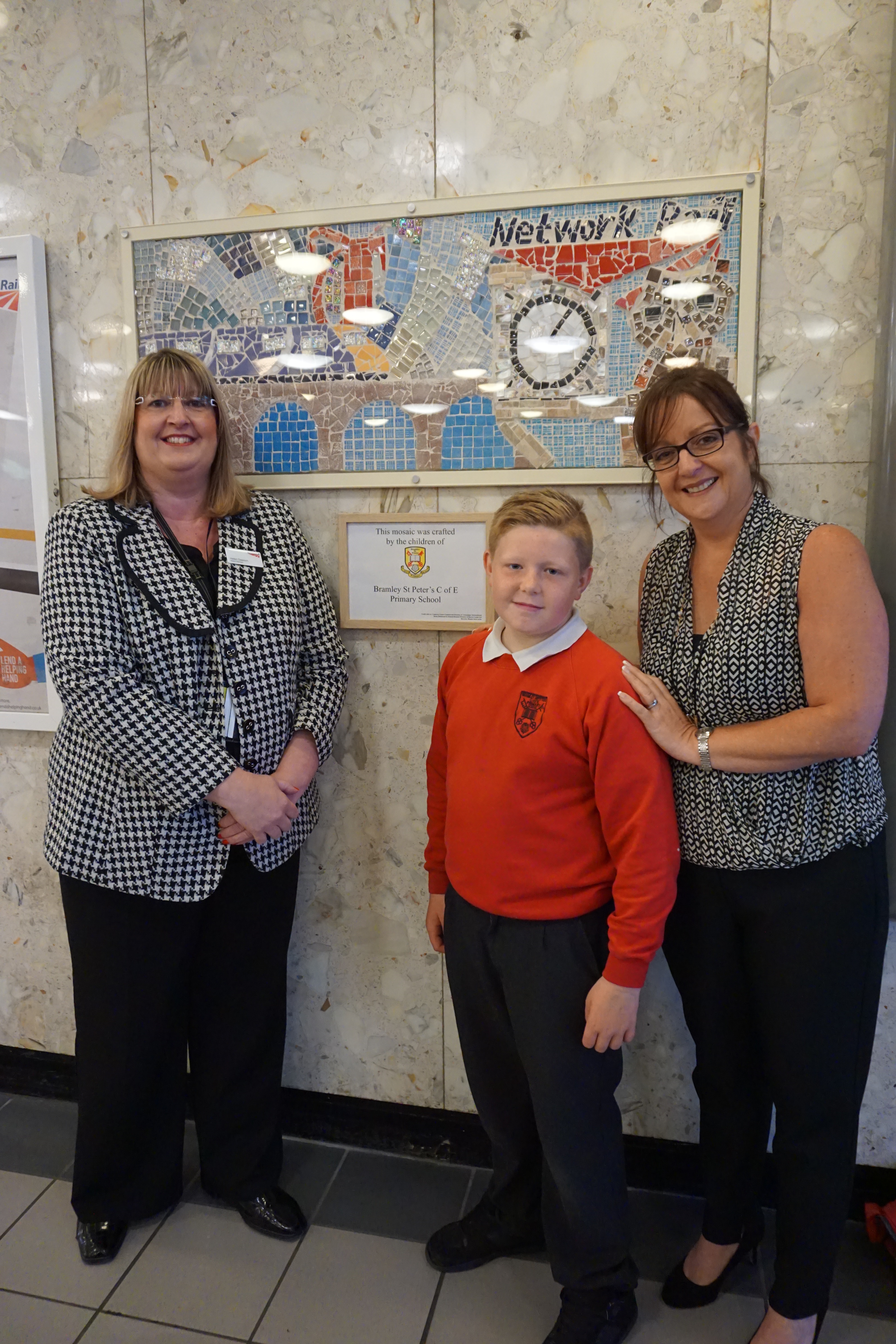 A safety conscious pupil from Leeds who wrote a manifesto to keep people out of danger on railway platforms has seen his hard work rewarded with a mosaic at his local station.