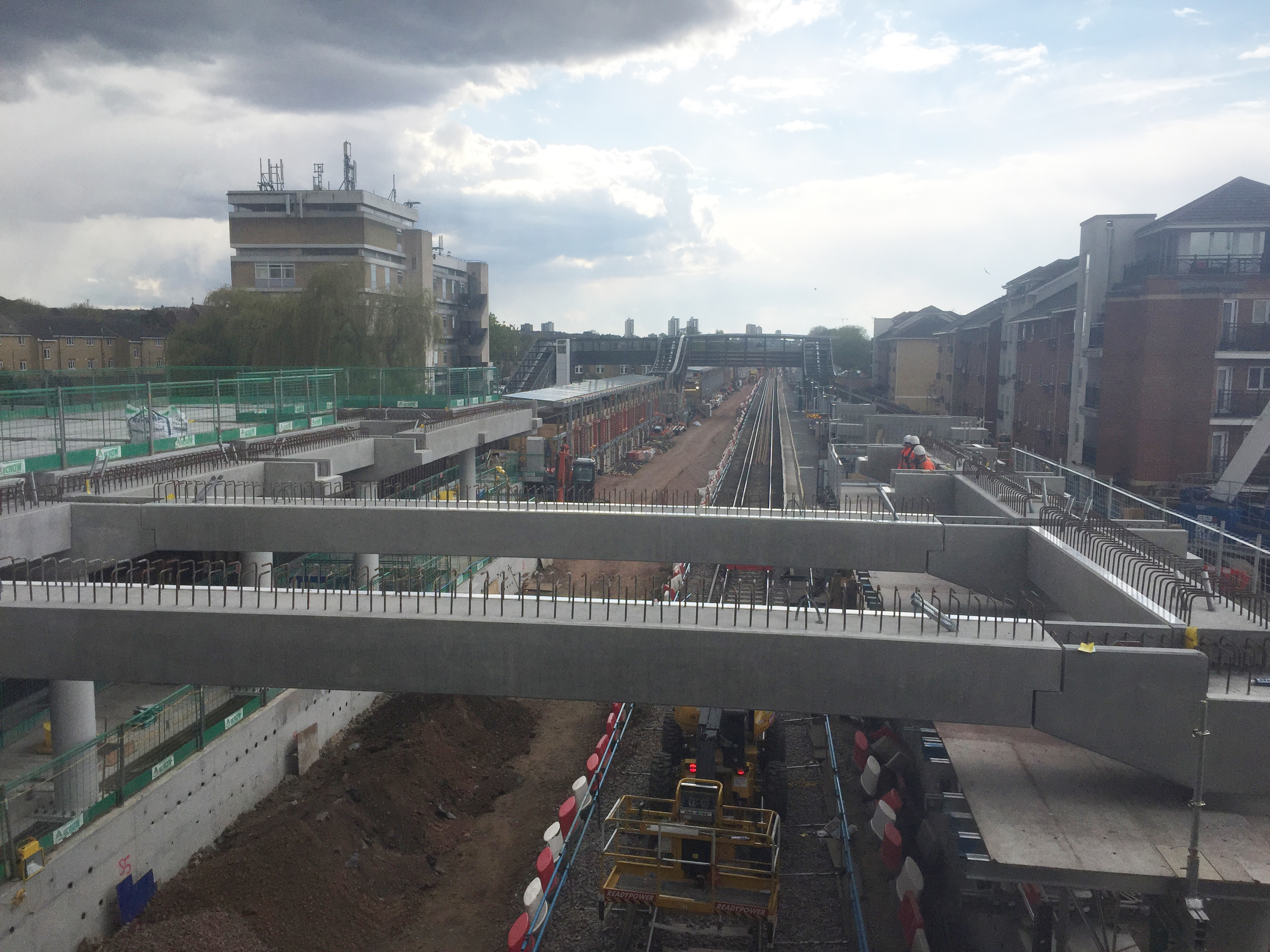 - The landmark new station at Abbey Wood is now taking shape with huge concrete beams lifted into place to form the base of the new two storey building. Plus 600m of track was also renewed over the bank holiday weekend.