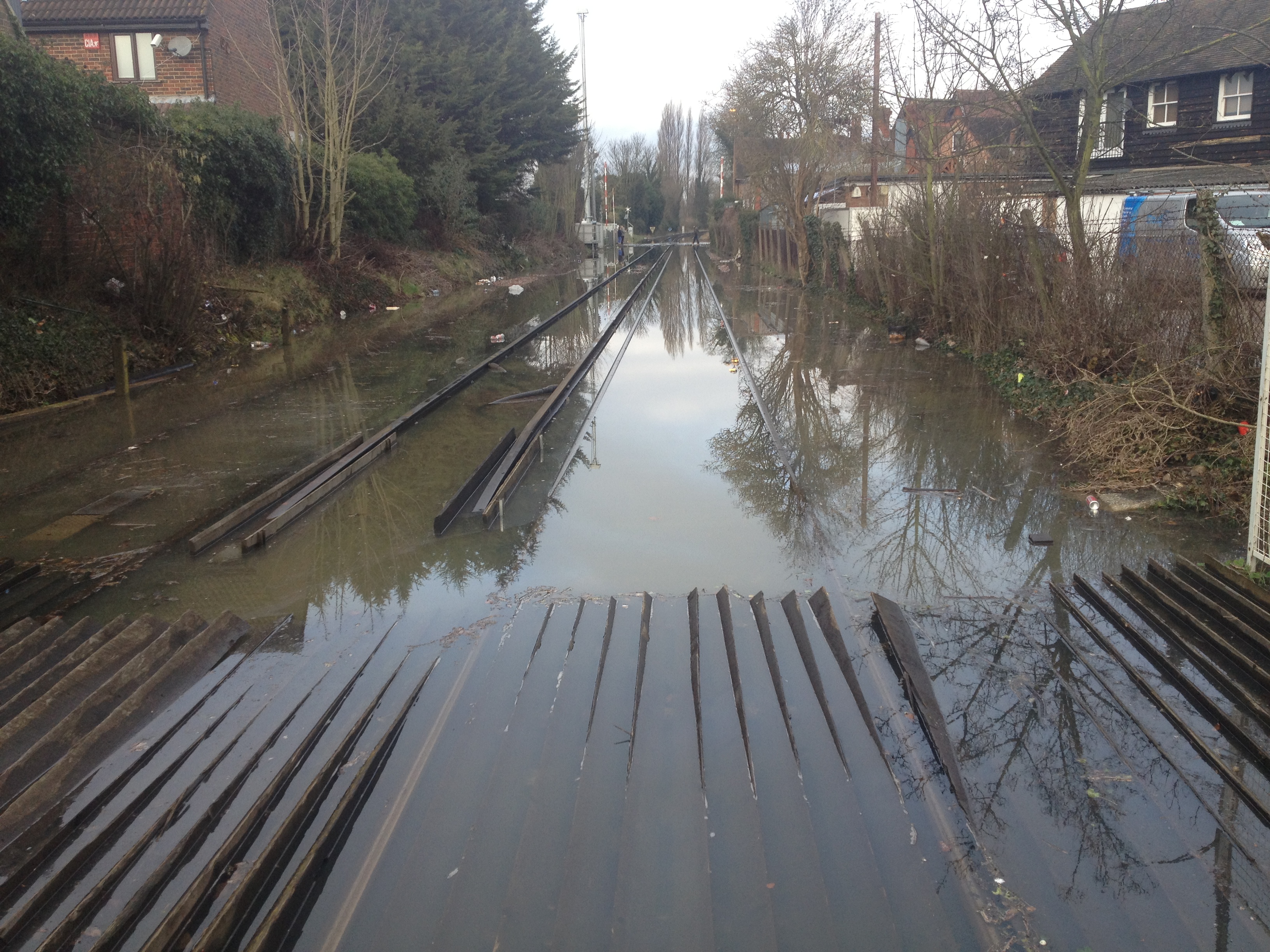 The railway at Datchet, which links Windsor with Staines, remains closed by flooding from the River Thames and is expected to remain so for at least the rest of the week.
