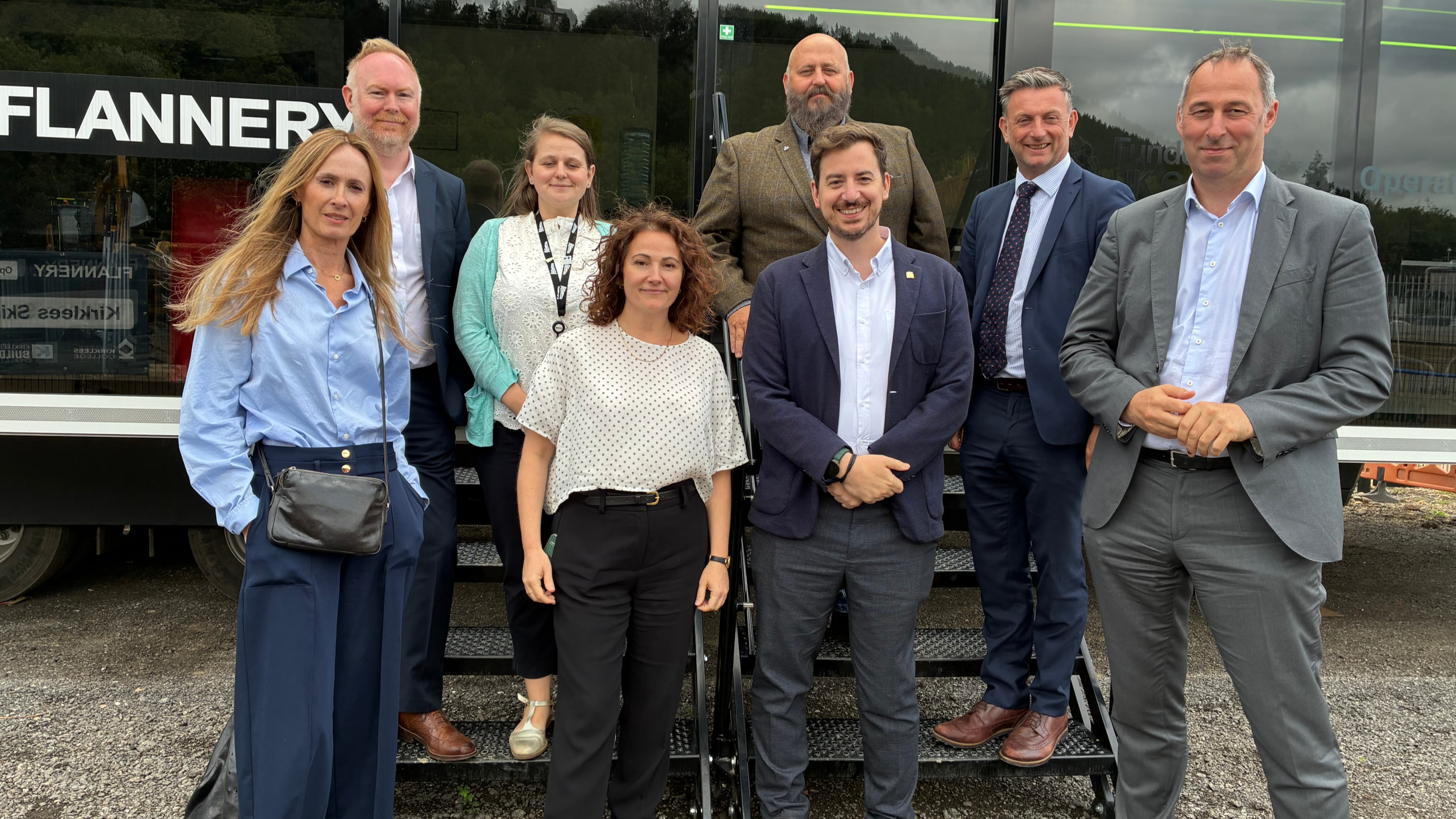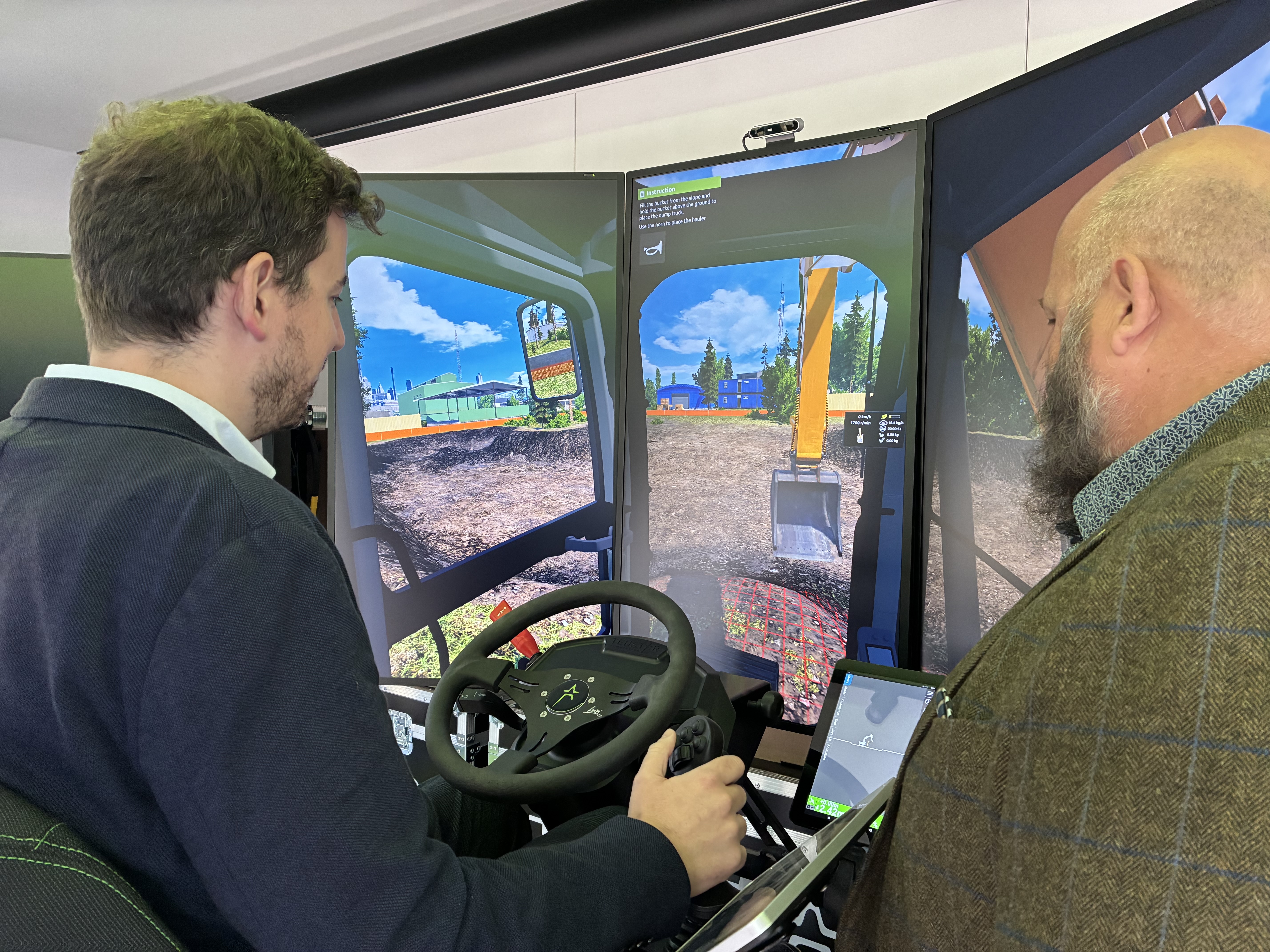 Next up was the Kirklees Skills Hub, a state-of-the-art training facility at Kirklees College’s Engineering Centre, where the growing demand for plant operators is being supported by equipping learners with practical, industry-relevant skills. The facility has a mobile training unit, where Mr Reader was able to try out the virtual reality plant simulators – this is adjacent to a live construction site equipped with real plant machinery, offering learners the chance to gain hands-on experience in a safe and controlled environment.