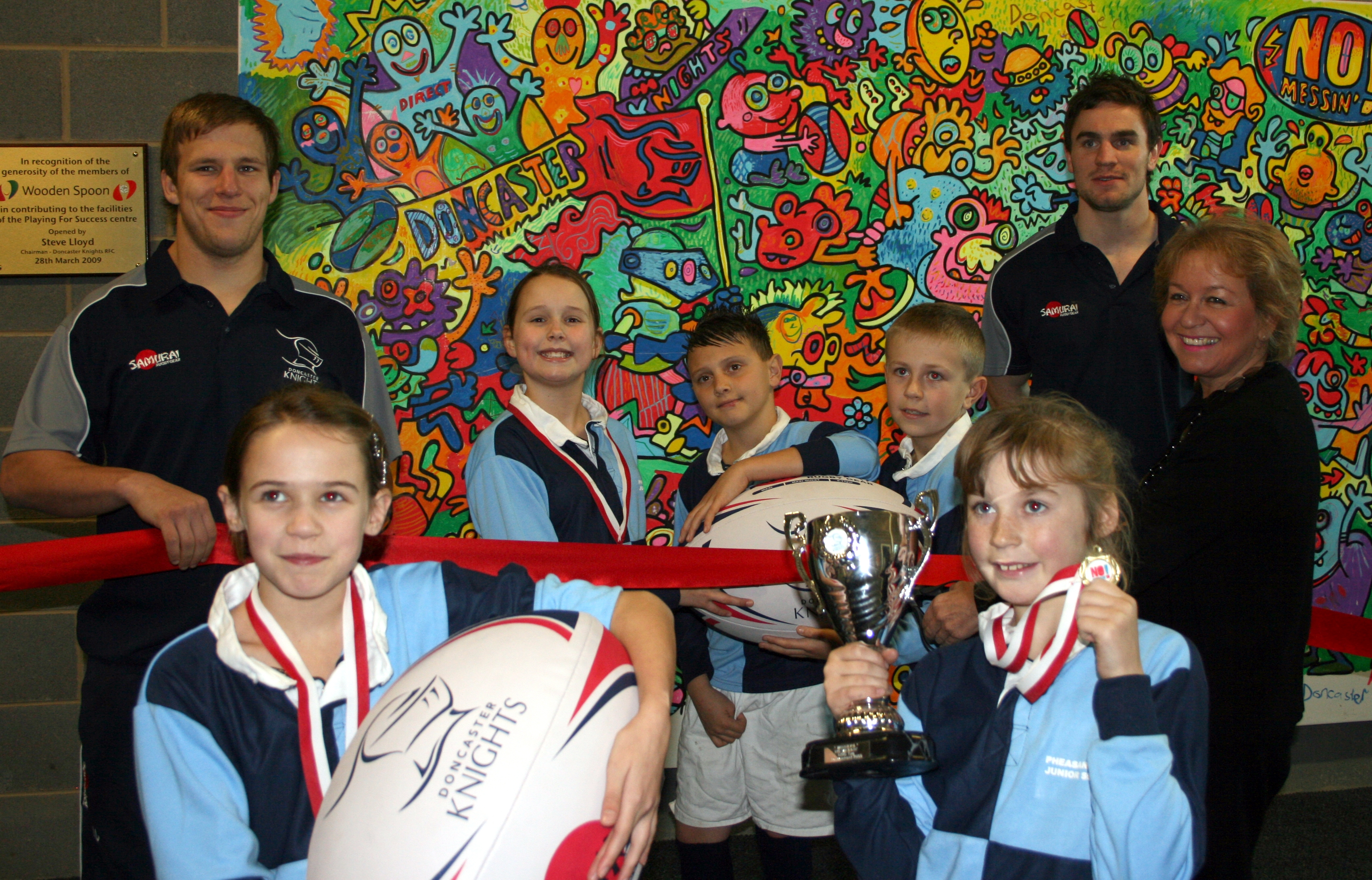 Young rugby fans will be reminded to stay safe near the railway at every match after a new art wall was installed at Doncaster Knights ground.
