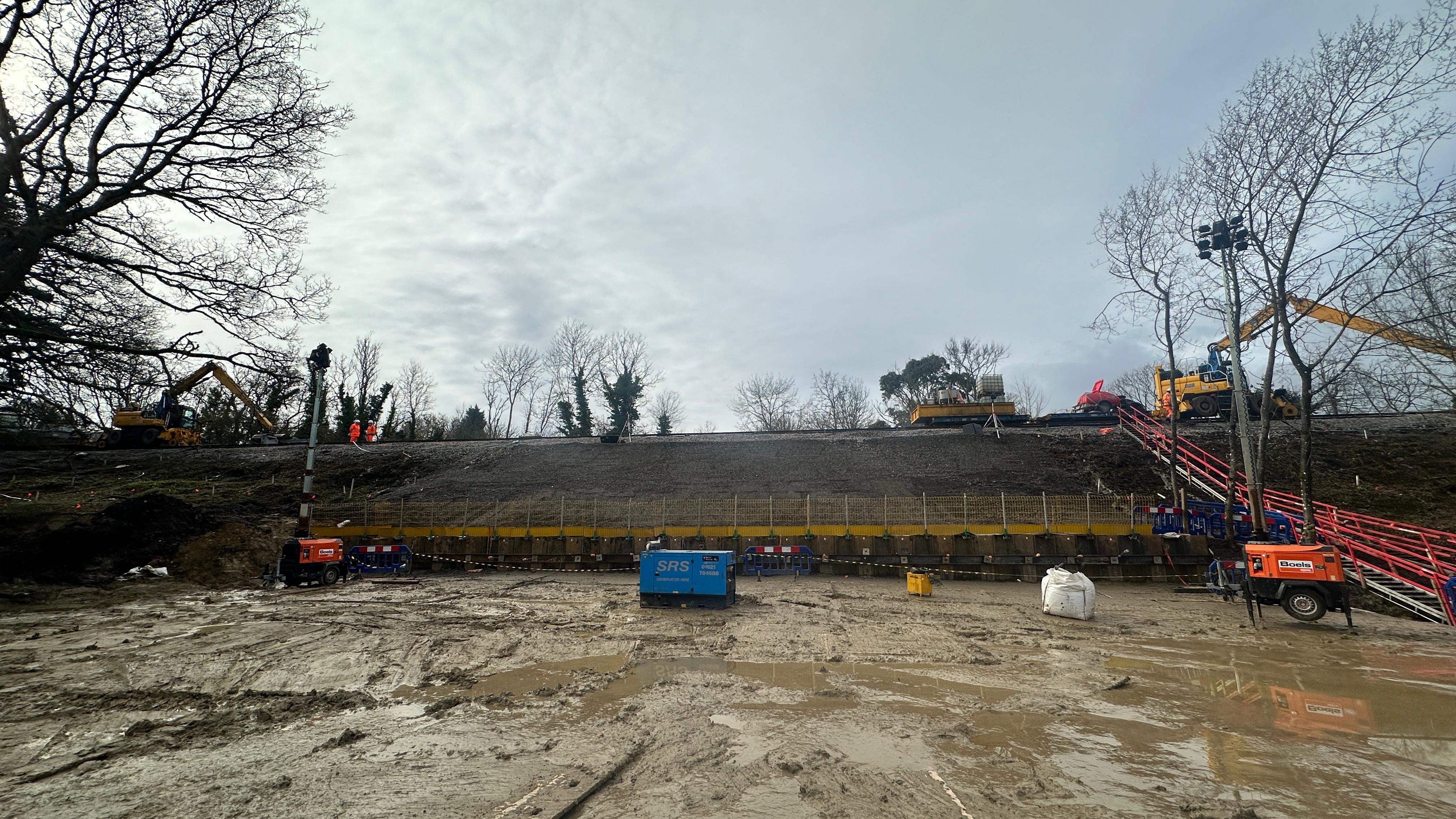 The slip happened when the soil gave way along a nine-metre section of embankment, sliding out from underneath the tracks, in what engineers call a ‘rotational failure’. The now strengthened embankment was made of a mixture of soil, saturated after days of heavy rain, on top of a persistently wet winter so far.