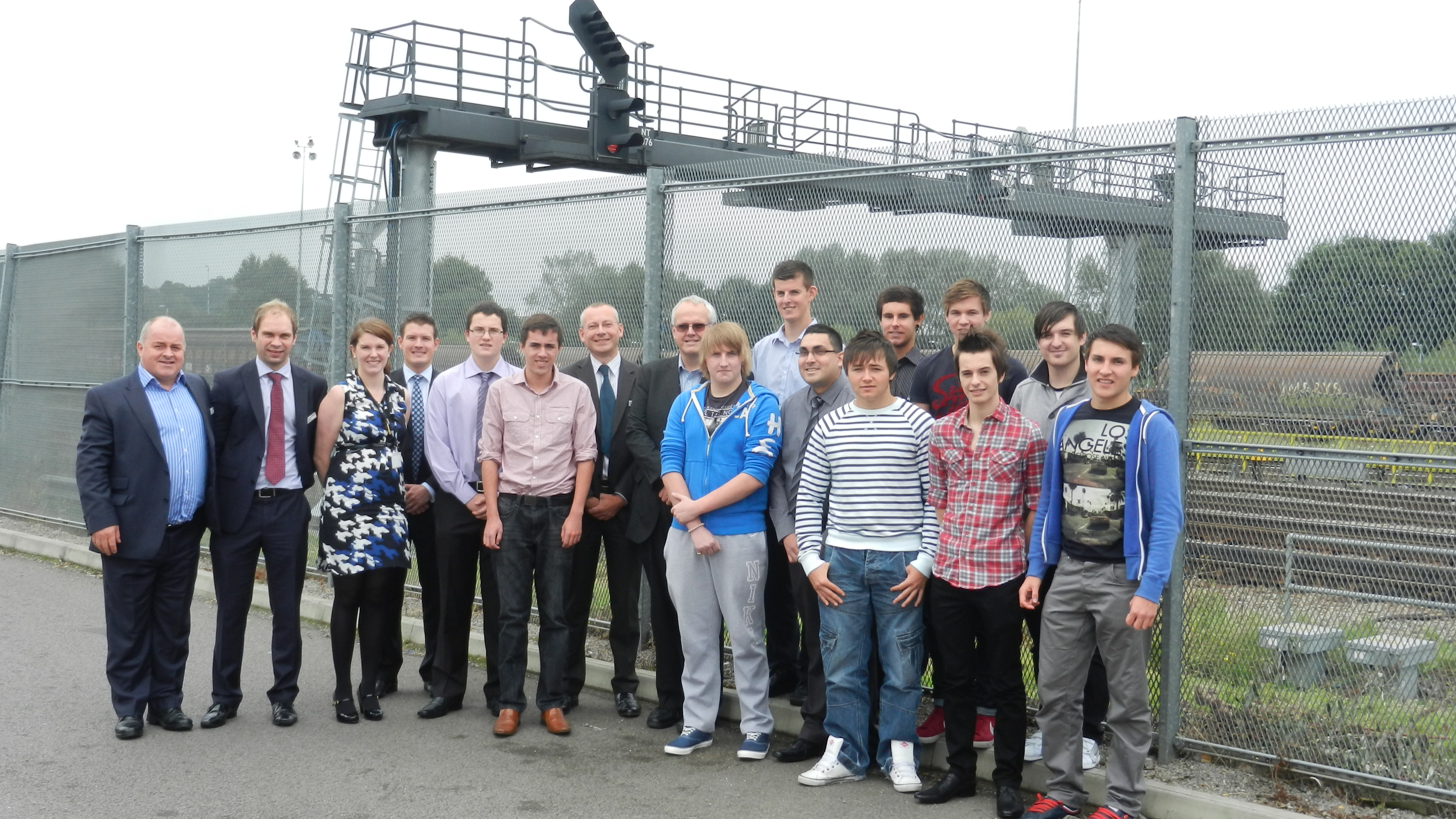 Mark Langman, Network Rail’s managing director for the Wales route, is pictured with senior managers and some of the new apprentices at the company's Newport maintenance depot.