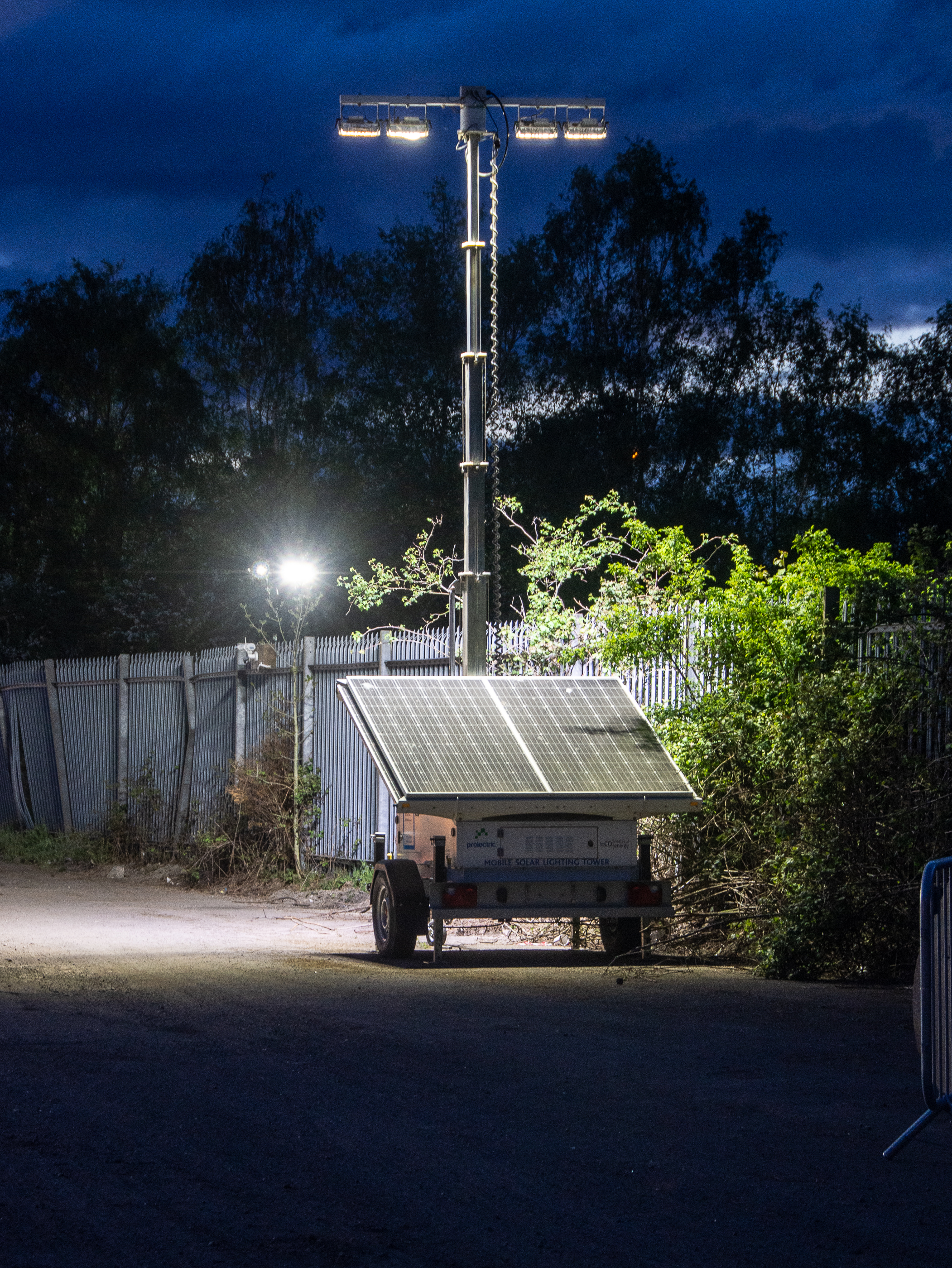 A total of 21 solar tower lights illuminated the site compound, car parking and work preparation areas, as well as being deployed on the trackside, where 200m of battery-powered link lighting was also used and column street lights were positioned along the access road to the site.