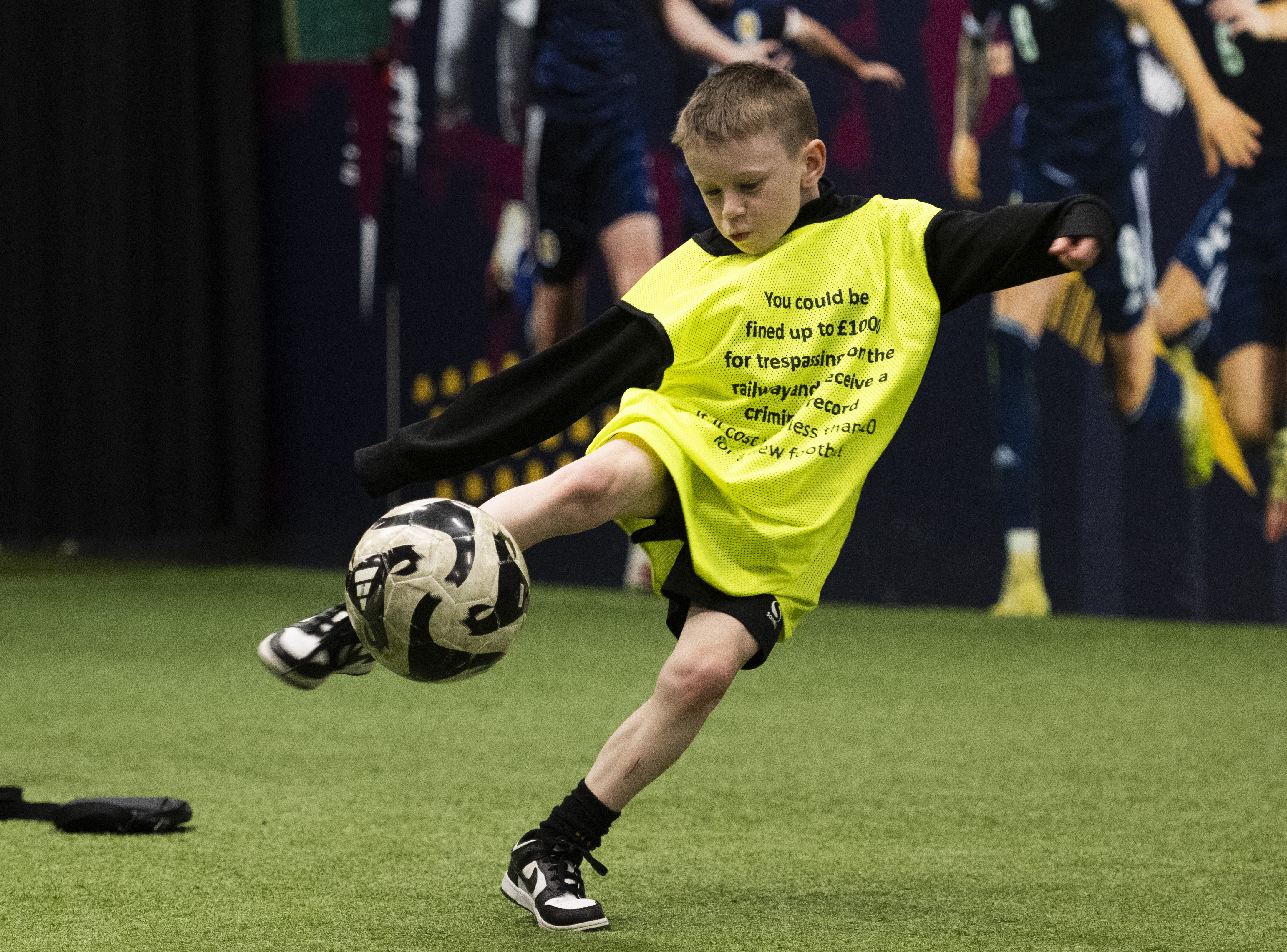 During the football sessions, each young person is provided with a branded bib promoting the safety messaging and receives an informative chat from their Scottish FA coach about the dangers of trespassing and how to use the railway safely.
