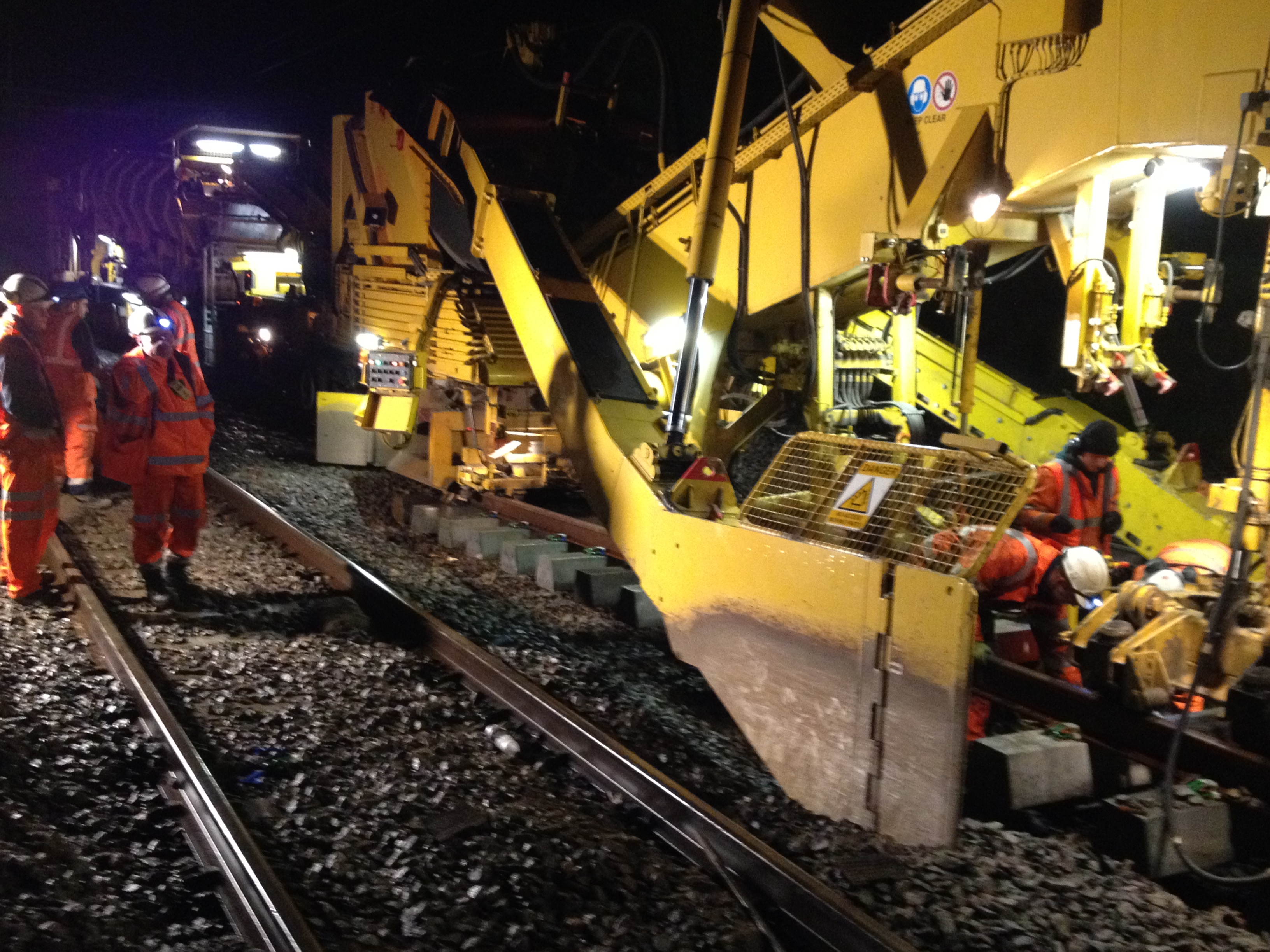 The track renewal train, known as Track Renewal System 4 (TRS4), is regularly used on overnight possessions, as its speed allows the railway to be kept open for longer.