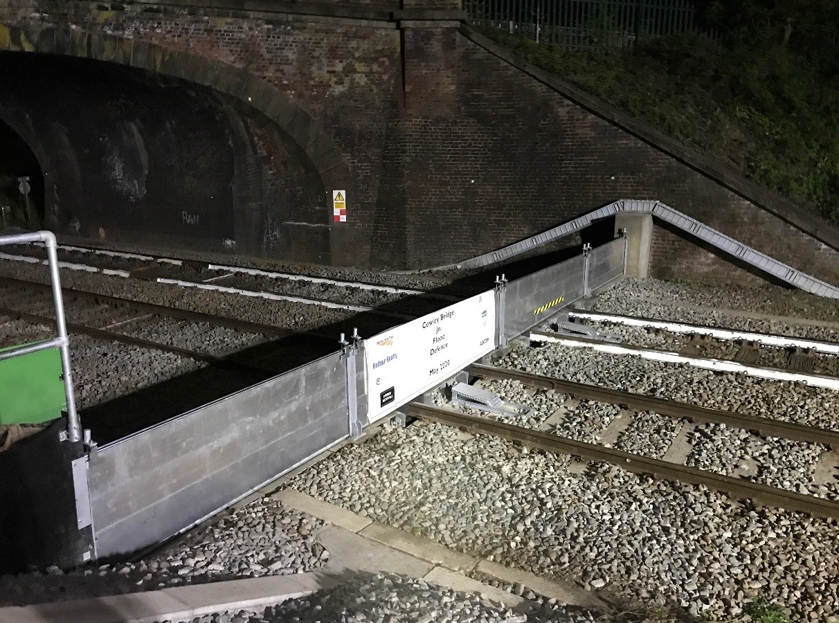 The new metal flood defence barrier can be quickly assembled across the railway when poor weather is forecast and stops the flow of the flood water. When not in use, the barrier remains largely unseen, which means the local landscape remains largely unchanged.