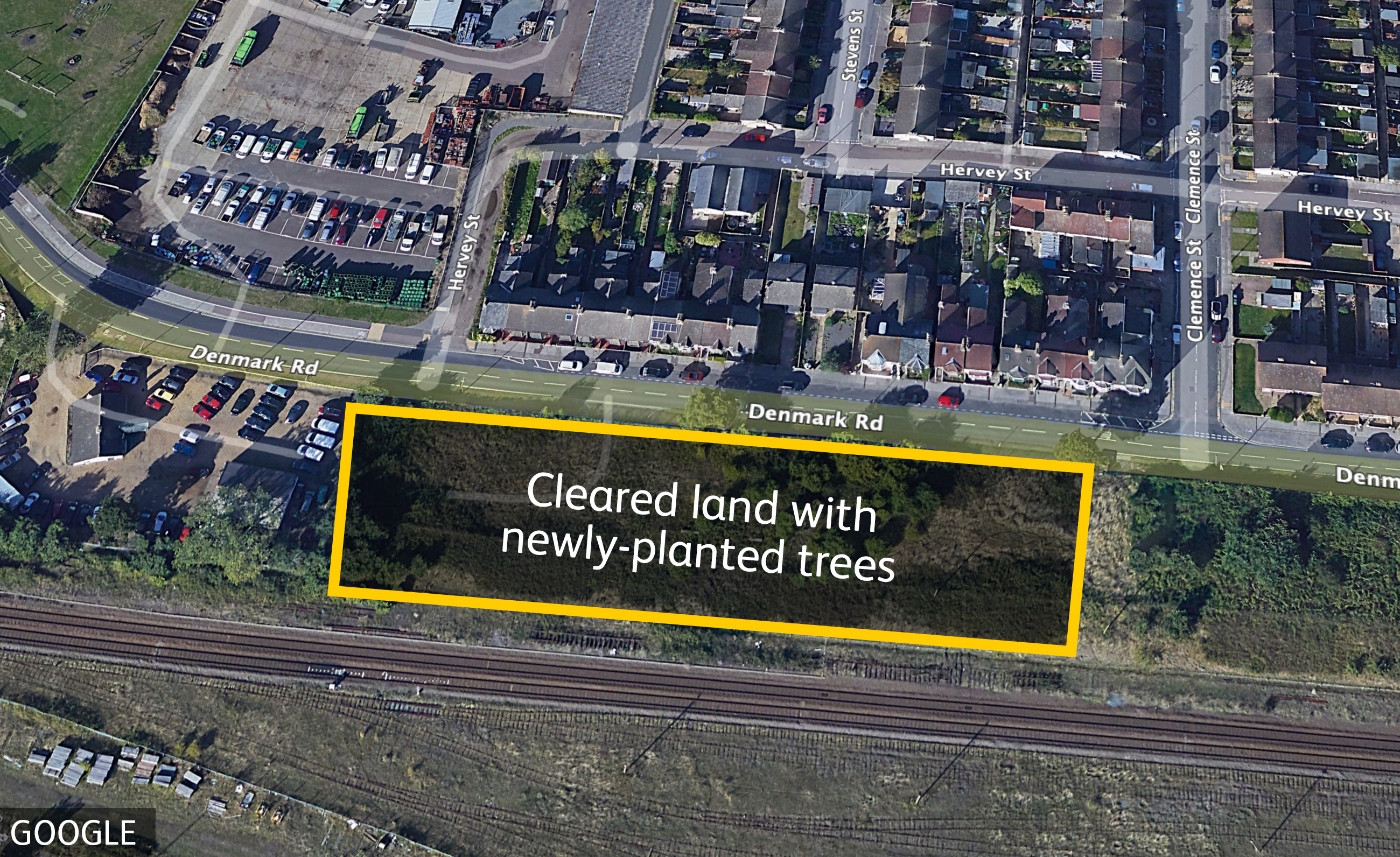 The land, which is between the railway line and Denmark Road, was once allotments but became overgrown and also attracted fly-tipping.