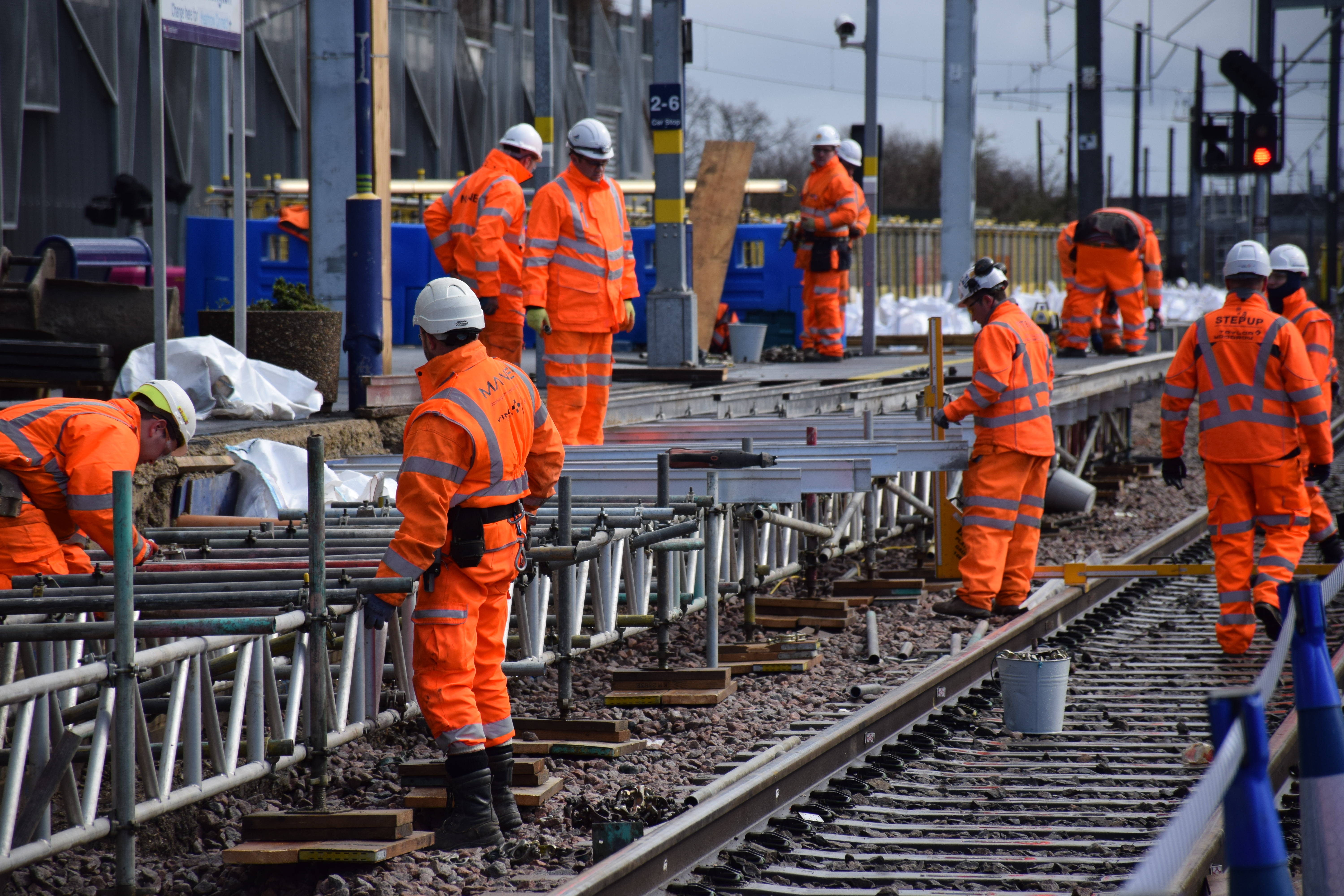 30 twin track cantilevers were installed. These are the steel column structures that support the overhead electric lines for two tracks.