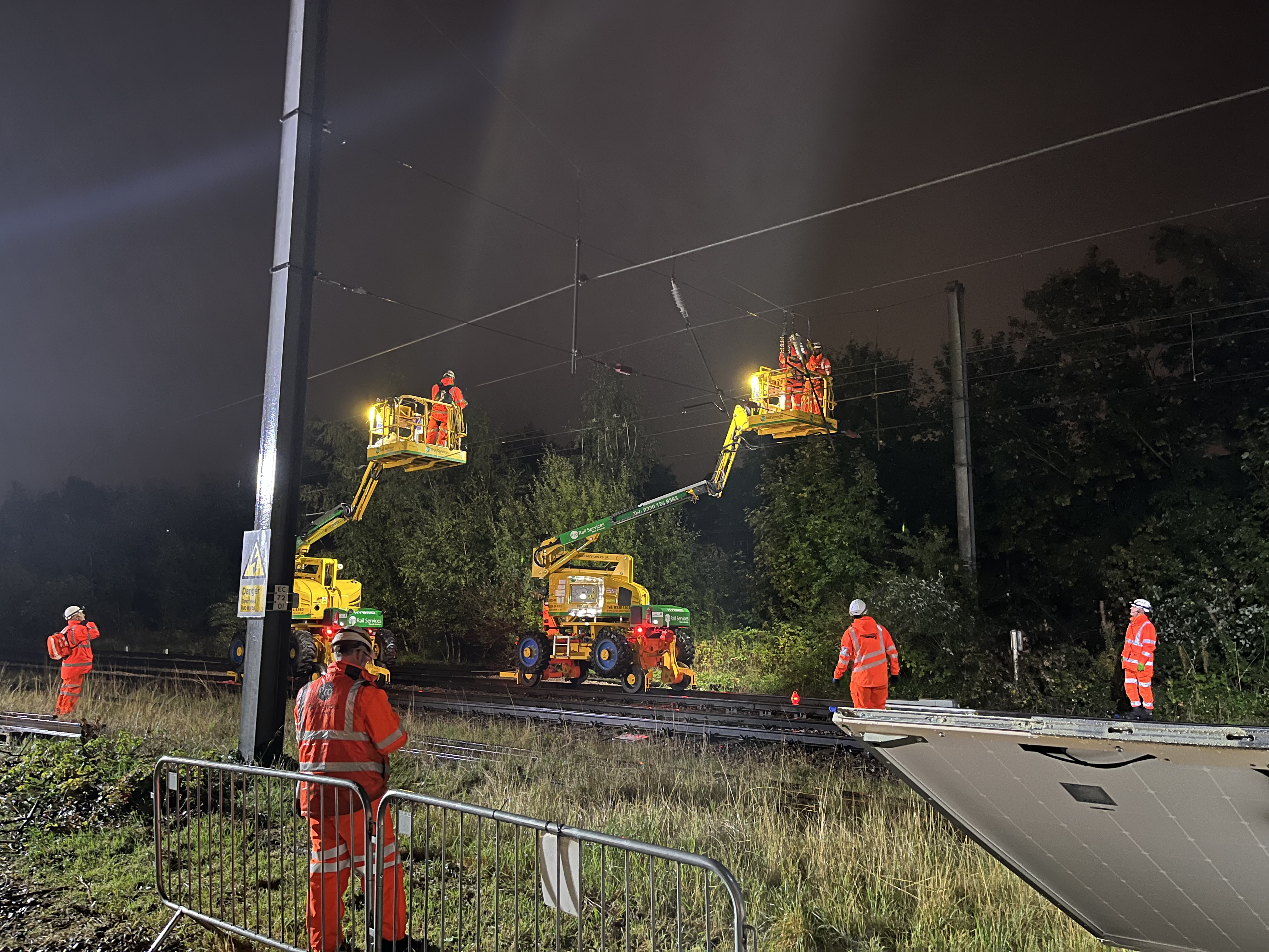 Teams worked over four nights to complete overhead line equipment renewals through the Cambridgeshire station, but traditional, carbon-intensive, diesel-powered generators and rail equipment were not used during the work.