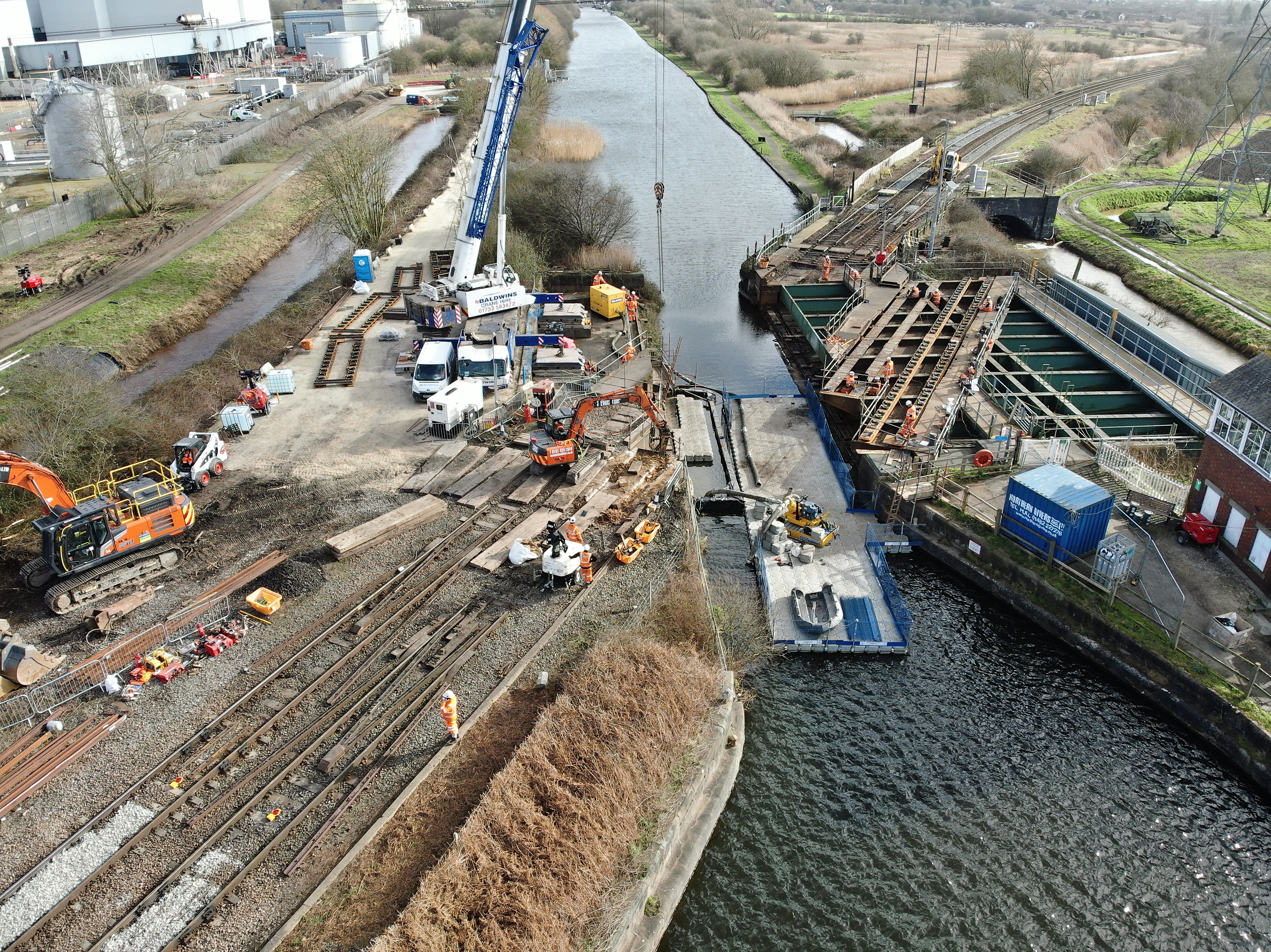 Teams have worked around the clock since midnight on Saturday 17 February until the early hours of Monday 26 February to strengthen one of the canal’s walls and remove rails and track equipment that has been in place for many years, to install new replacements.