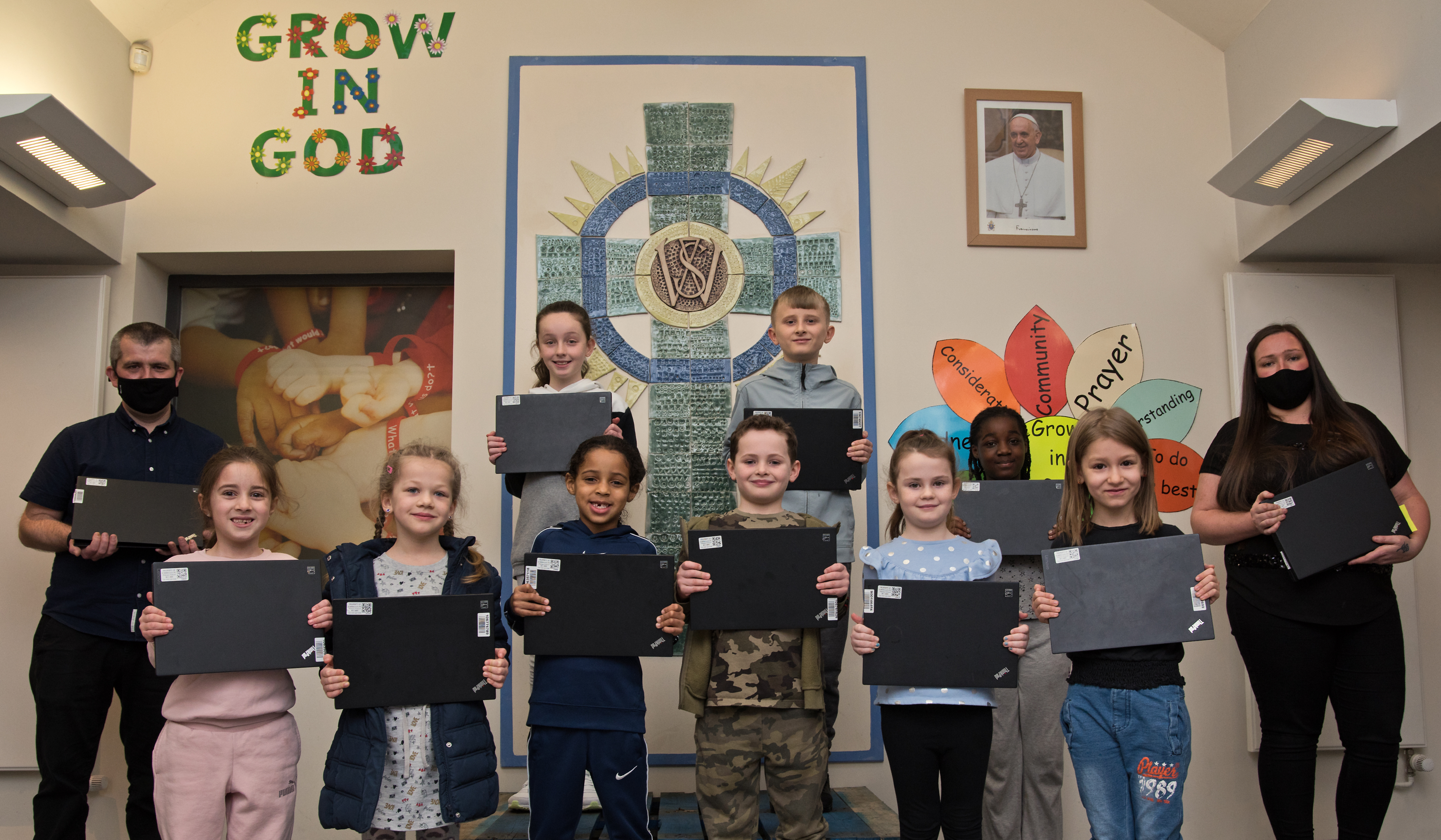 Network Rail donates laptops to St. Willibrord's R.C. Primary School in Clayton, East Manchester