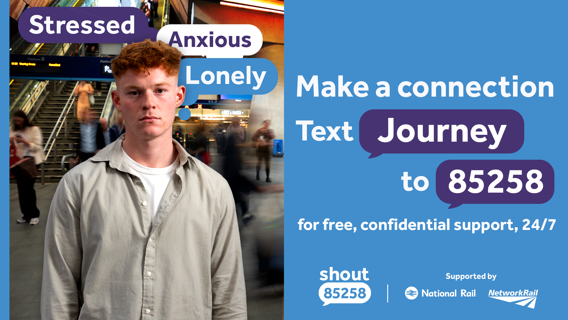 The new campaign, Make a Connection, encourages people to text the word ‘Journey’ to 85258 to access the Shout service - run by Mental Health Innovations - for free and confidential mental health support, 24/7. It forms part of the rail industry’s efforts to help reduce suicides on the network by engaging with the public upstream and signposting them to mental health support services at the earliest opportunity.