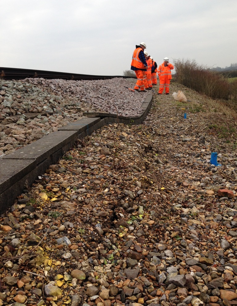 “The site of the damage is quite isolated so we have spent this week building a road across the fields for our heavy equipment. We have already started putting steel sheets into the ground along 100m of the railway and we will then use that wall of steel to support new embankment material and a further 150m of line will also need work.