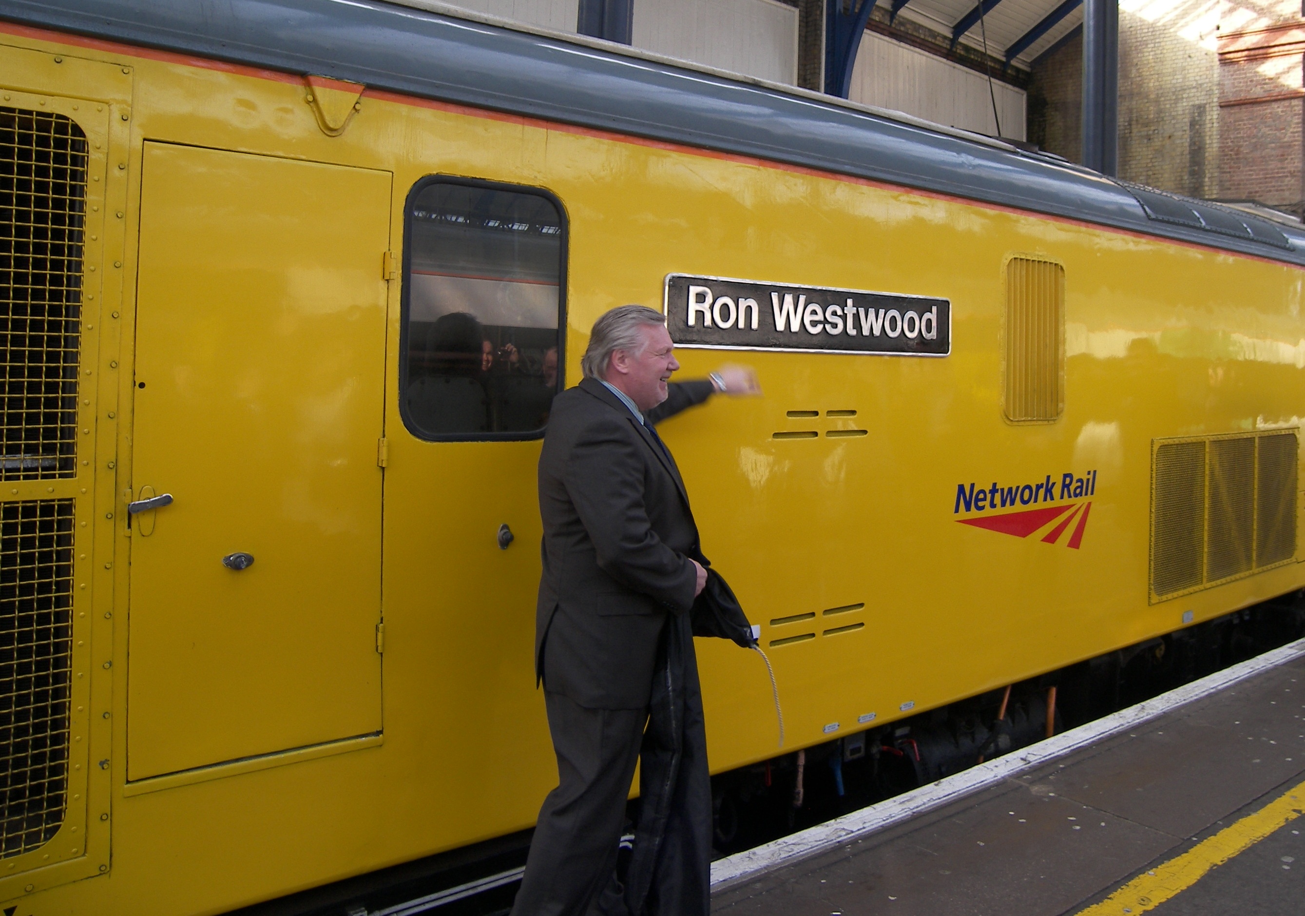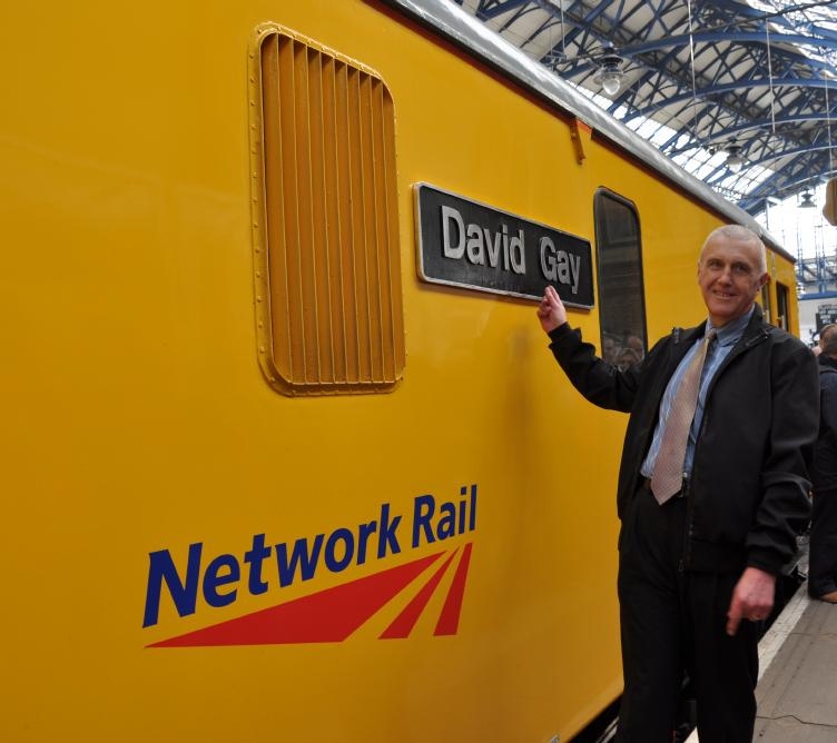 David Gay and Ron Westwood were invited to unveil the new name of a Network Rail Class 73 engine on platform 1 at Brighton station. Unbeknown to them, the locomotive, used in south east England for a range of rail improvement and maintenance works including clearing snow and transporting building materials, was fitted with a plate in David’s name on one side and Ron’s name on the other. The surprise ceremony was attended by the two men’s families, friends and colleagues.