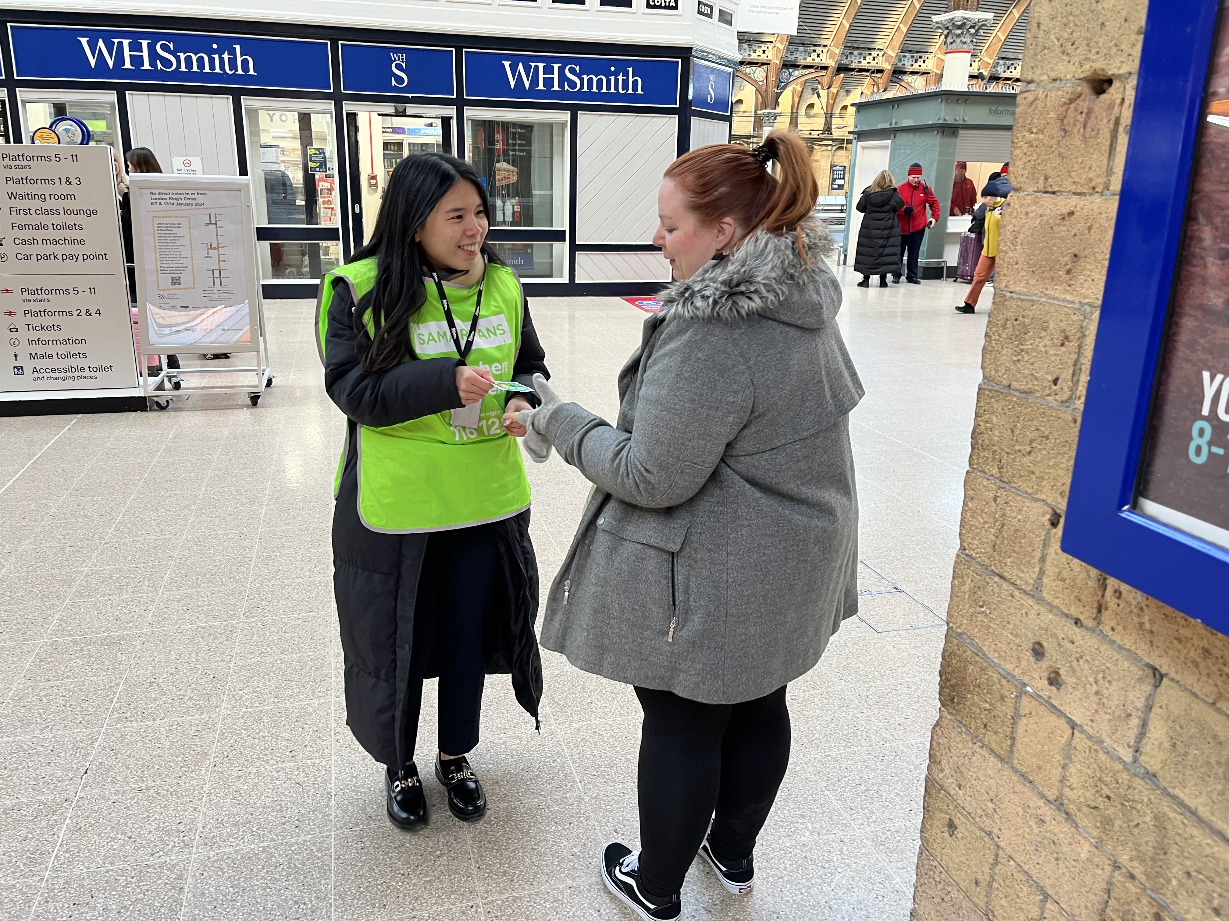 Network Rail colleagues have been with Samaritans volunteers at York station on the East Coast Main Line today handing out teabags and chatting to passengers about the power of connecting over a cuppa, as well as reminding passengers about the support available if they’re struggling with their mental health.